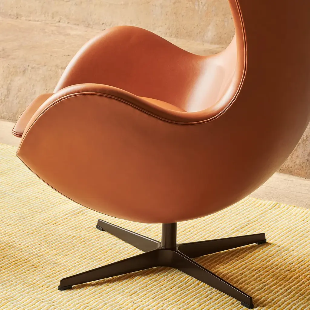 The Fritz Hansen Egg Chair stands as one of the most revolutionary pieces in mid-century modern design, showcasing Arne Jacobsen's masterful approach to sculptural furniture. Created in 1958, this iconic chair began as an experimental project in Jacobsen's garage, where he meticulously shaped wire and plaster to achieve its distinctive cocoon-like silhouette – a testament to his artistic vision and innovative spirit. The chair's ergonomic design features a pioneering construction method where cold-cured foam is molded to create the signature shell, then masterfully upholstered to maintain its fluid, organic form. This sophisticated structure is mounted on a star-shaped aluminum base with a 360-degree swivel mechanism and tilt function, allowing users to create their own private sanctuary within any space. Originally commissioned for Copenhagen's Royal Hotel, the Egg Chair revolutionized modern furniture design by proving that functional seating could also serve as architectural sculpture. Its enveloping form offers both visual and acoustic privacy, making it particularly well-suited for contemporary open-plan environments, from elegant home interiors to prestigious commercial spaces. Meticulously crafted in Poland to Fritz Hansen's exacting standards, each chair measures 33.9" wide by 31.1-37.4" deep and 42.1" high, with a comfortable seat height of 14.6". The chair combines a powder-coated or satin-chromed steel frame with an aluminum base and premium upholstery options, ensuring this investment piece will remain a timeless addition to any sophisticated interior. NOTE: Footstool sold separately.