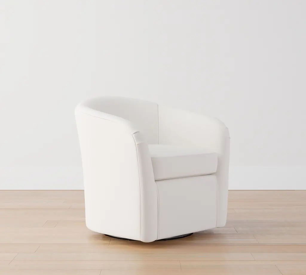 The Elena Swivel Chair features soft, inviting lines and a gently curved back that wraps around. The eye-catching shape of this chair allows it to easily blend with any modern or mid-century mod decor. Perched on a sturdy metal base, this chair swivels to allow easy access to anything within reach. Complete with a sleek, low profile, this chair offers you a comfortable seating experience wherever it's placed.