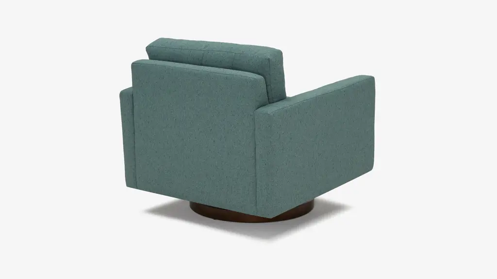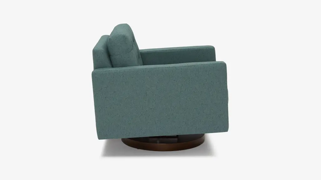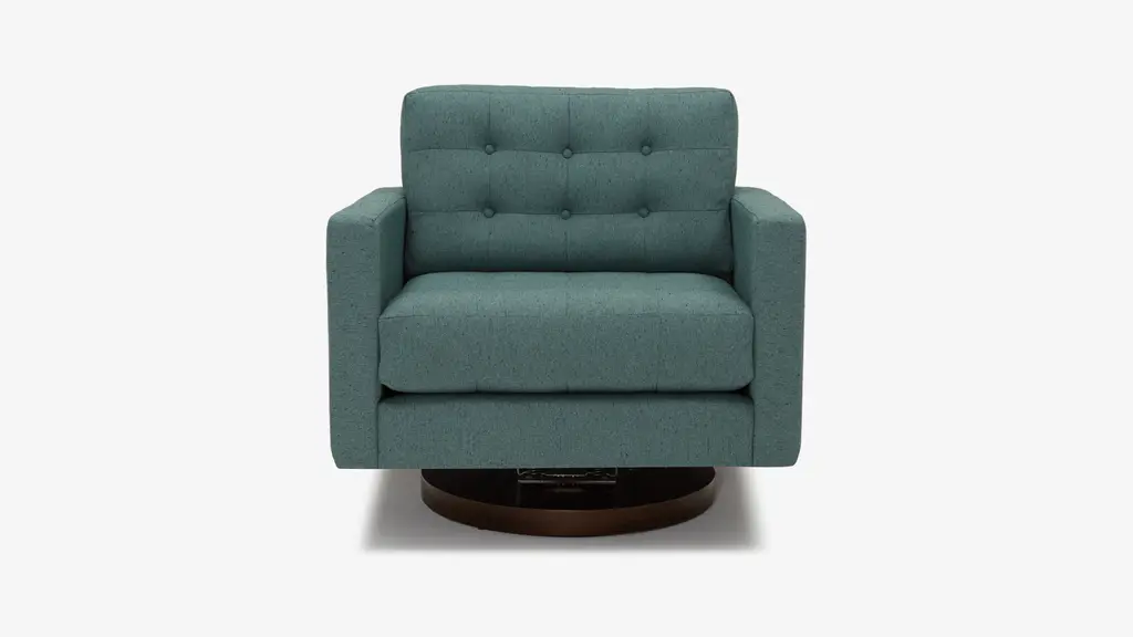 FeaturesGREENGUARD Gold CertifiedThis piece was screened for 10,000+ chemicals and emissions, contributing to cleaner air in your home.GREENGUARD GoldThe iconic Mid-century good looks of a button-tufted armchair merged with the feel of a 360-degree swivel to create the perfect living room fixture.When choosing the right furniture to fill your home, we look to comfort, style and craftsmanship to guide us. In the search for the perfect armchair, all roads lead to the Eliot swivel chair. It possesses the old-school soul of the 1950s through its unmistakably tailored details, and the heart of our childhood memories with its delightfully irresistible swivel motion. Details and product care +DimensionsMeasure for deliveryOverall33"w x 33"d x 33"hSeating26"w x 22"d x 18"hArm Height3" x 25"Customers love the Eliot Swivel Chair4.6/5(44 reviews)+19 moreJJessica J.Bixby, OKRating: 5 out of 5 starsApr 03, 2023Stylish and cozyMy Elliott chairs are beautiful and comfortable. A winning combination. I would order this chair again.JJeffrey D.Ishpeming, MIRating: 5 out of 5 starsMar 05, 2022ChairThis chair goes perfectly with our sofa and sectional. It swivels and is nice and roomy! It fits in any space and is very comfortable.See all 44 reviews and photos