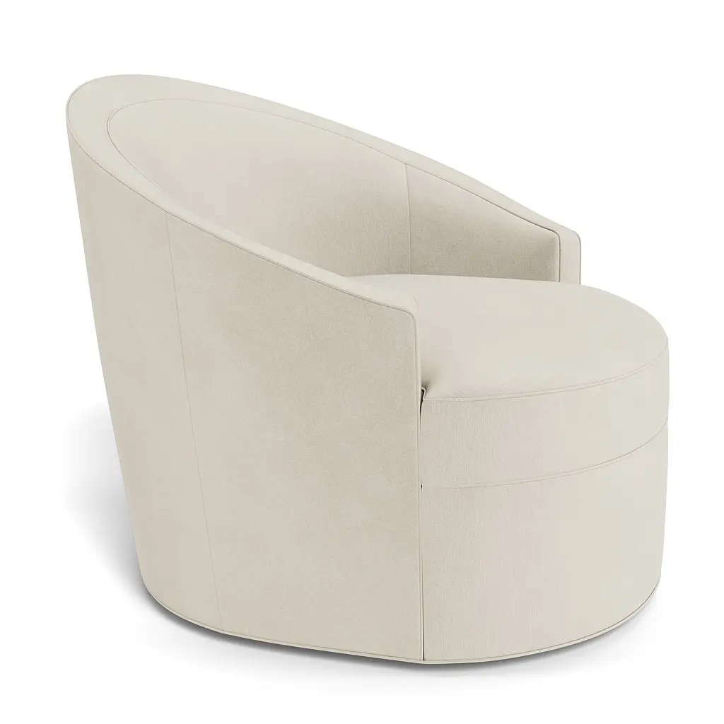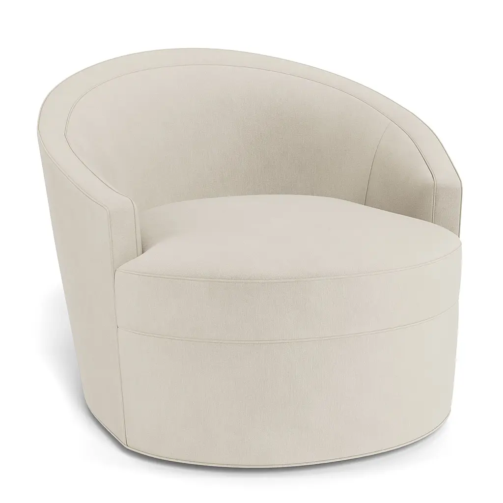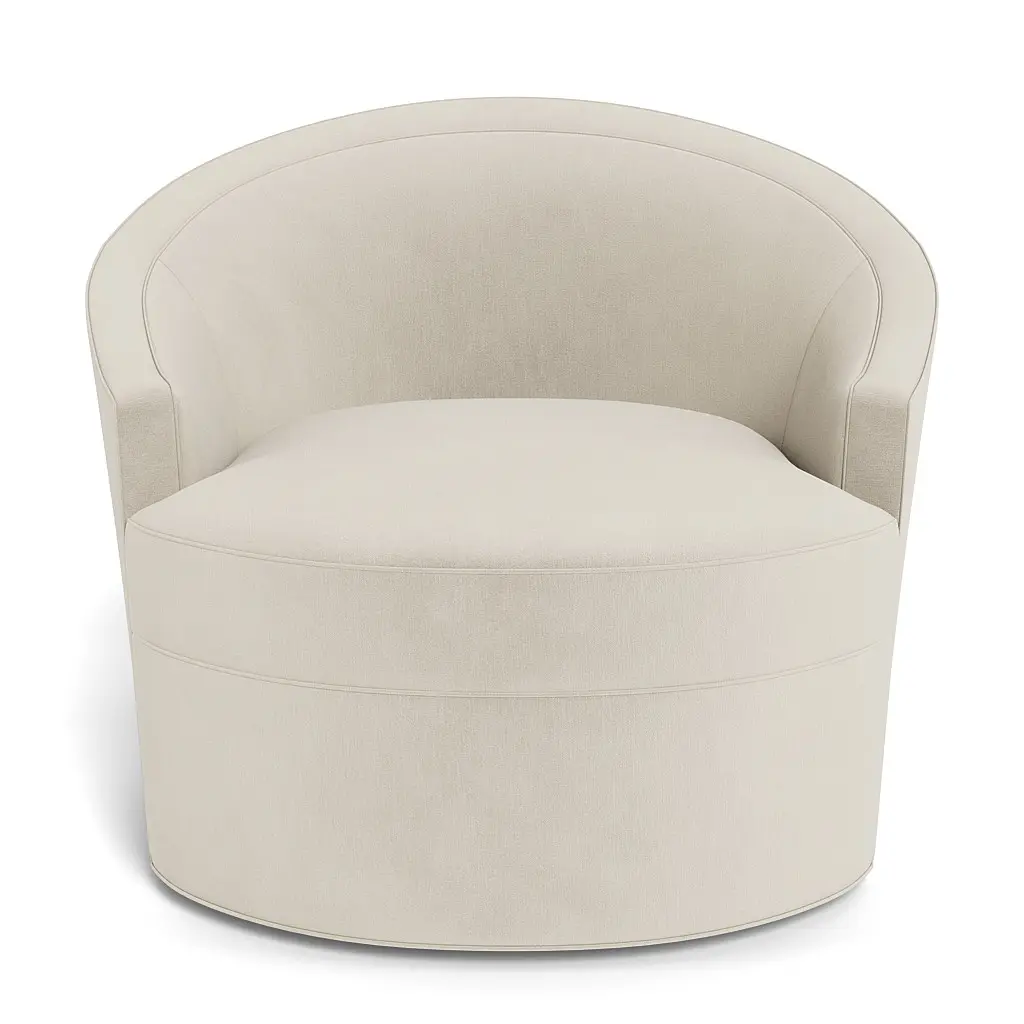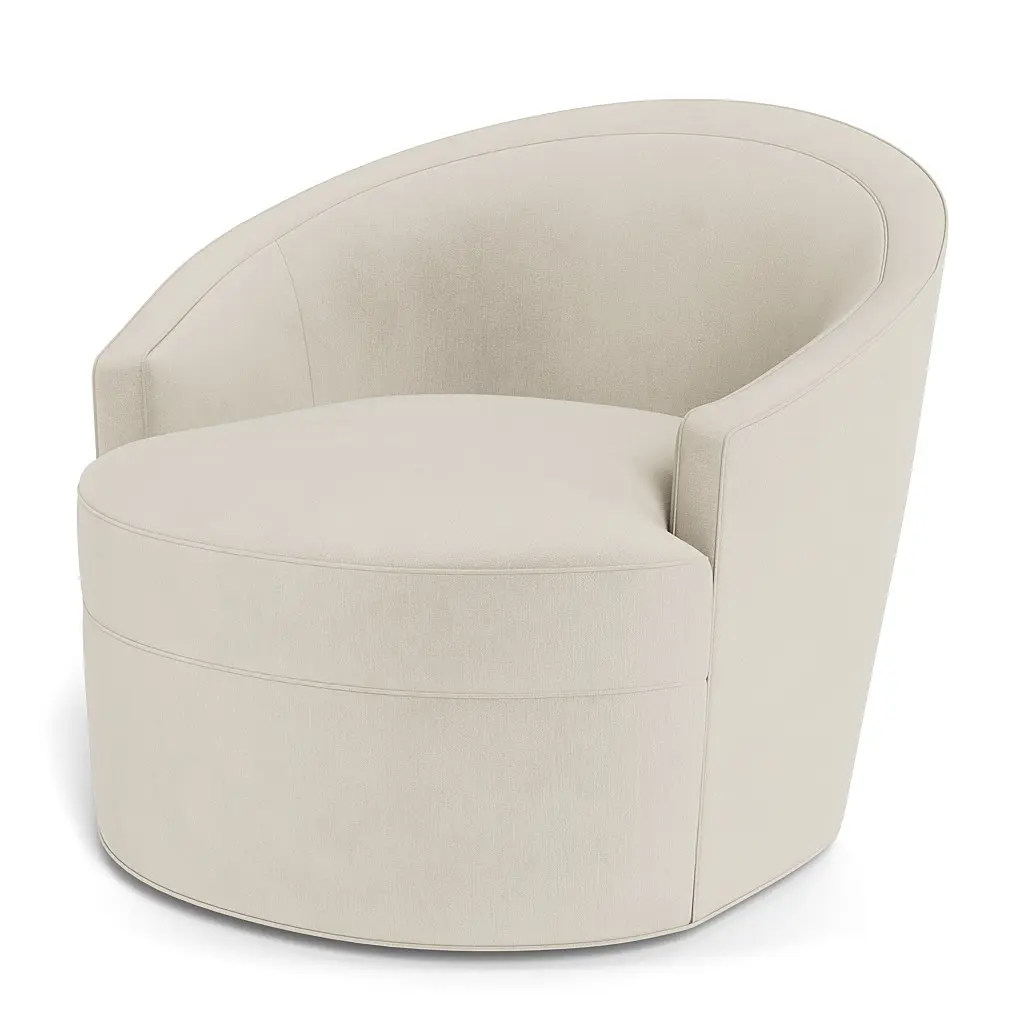 Offered in a variety of lustrous fabrics, the Elise Swivel Chair is made to mimic the natural landscapes of our collective home with its elegant curved shape. The deep-set cushion of this curved armchair provides ample space to lounge, read, and rest with its timeless barrel silhouette and cradling comfort. The Elise Collection showcases tight seat cushions that convey a formal look while still providing comfort on top of a balanced suspension base. Crafted with a sustainably-sourced Goodwood frame, this abc exclusive swivel chair invites a lifetime of memories into your living room, dining room, or office space. abc Cobble Hill is available in 80+ color and fabric combinations to create and customize the upholstered furniture of your dreams entirely online.