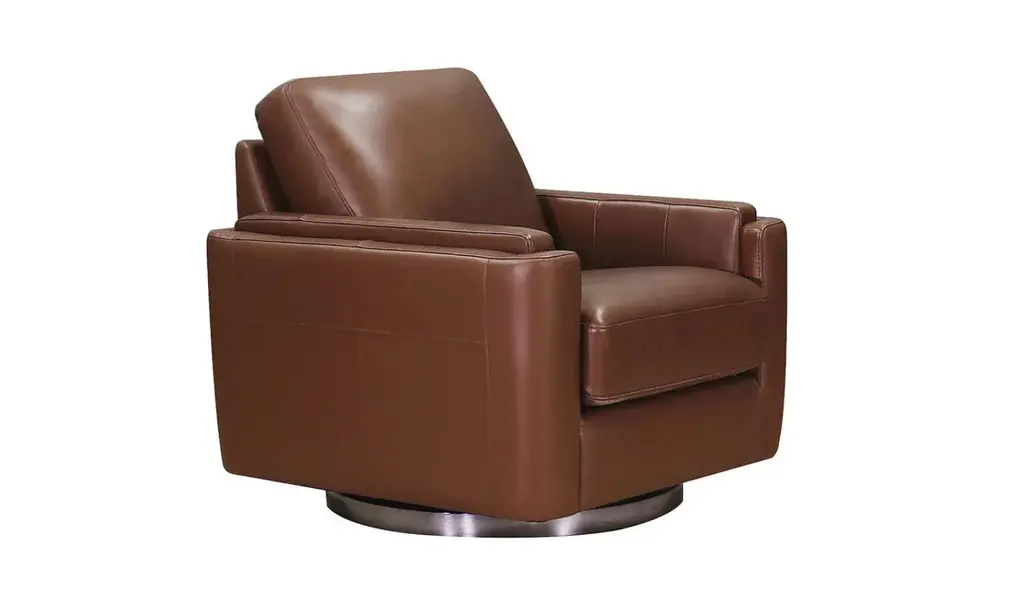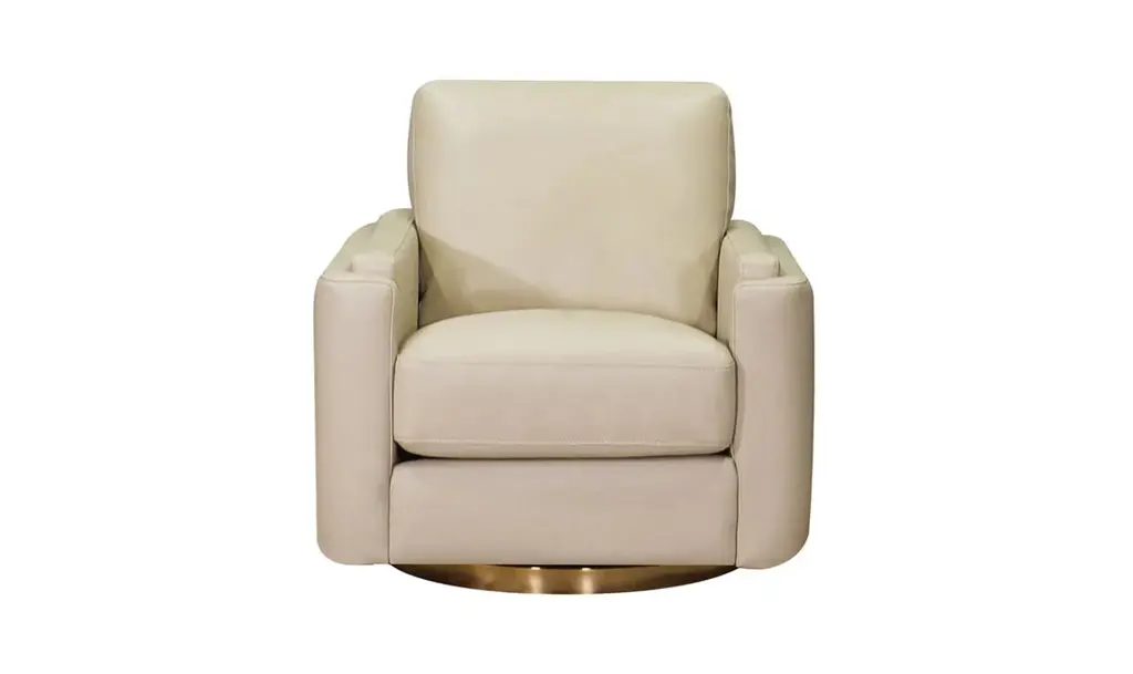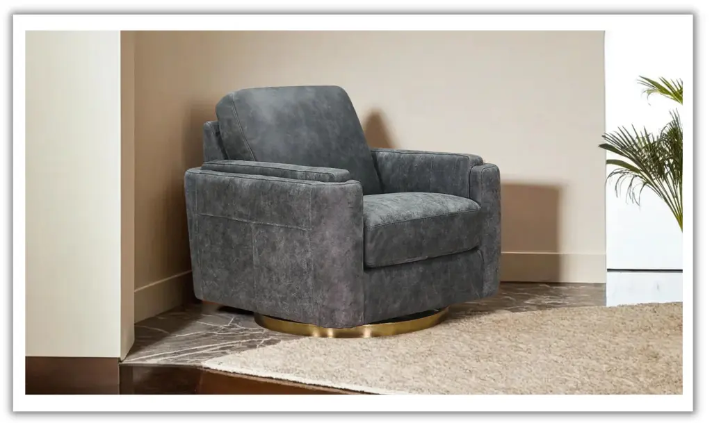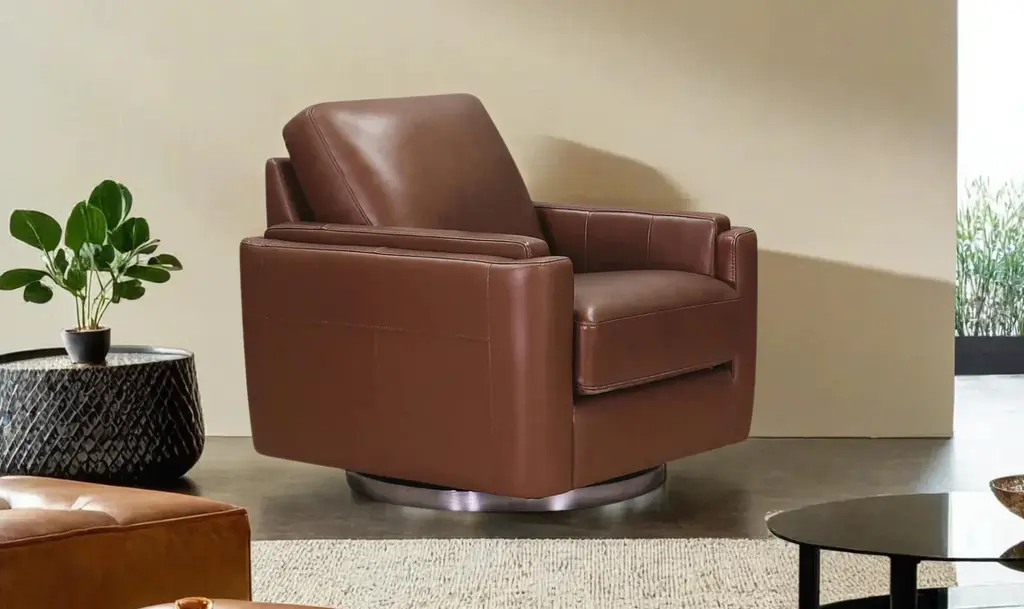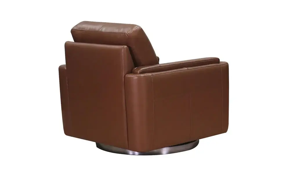 The Elm Swivel Leather Chair with Cushion Track Arm brings contemporary elegance to your living space. The Elm Swivel Chair Collection is distinguished by its unique arm design, offering a clean and tailored appearance that wraps around the front rail, enclosing a small arm cushion for enhanced comfort. The futuristic and modern flair of the Elm, complemented by a swivel base, creates a visually pleasing aesthetic that stands out in any room. Crafted from top-grain leather for the seating areas and armrests, with split-grain leather on the sides and back, this chair ensures both luxury and durability. The ultimate comfort seating combines premium goose feather and down, pocketed coils, and high-resiliency foam, while non-removable back cushions maintain a uniform look. The removable seat cushions with zip covers offer easy maintenance and protection. Built with a kiln-dried solid wood frame and reinforced with L-braced and glued corner blocks, the Elm chair promises maximum durability. The no-sag spring base and foam-padded sides and back provide added support and comfort. Experience flexibility with the 360-degree swivel feature, enhancing usability and style. The Elm Swivel Leather Chair is the perfect choice for those seeking comfort and forward-thinking design.