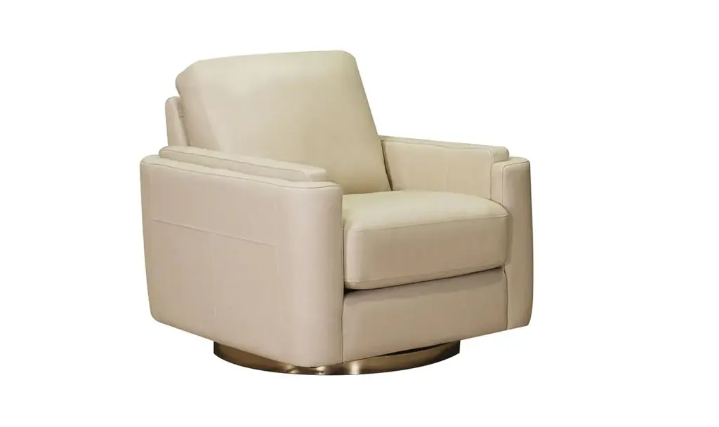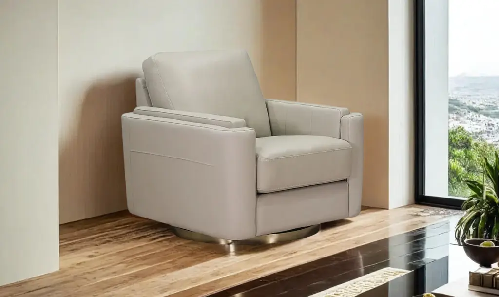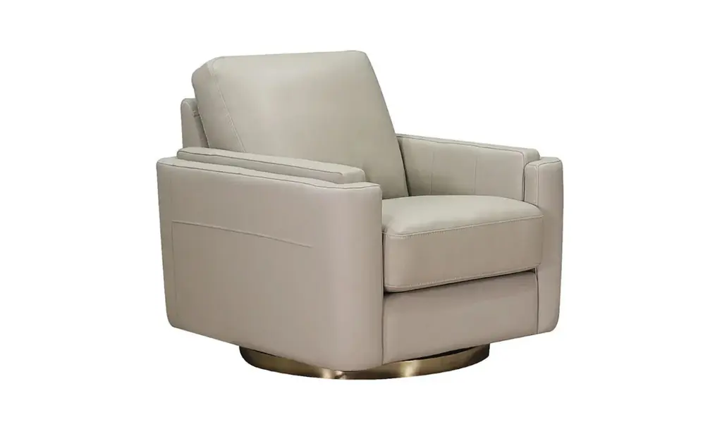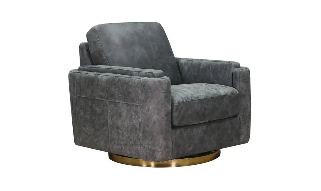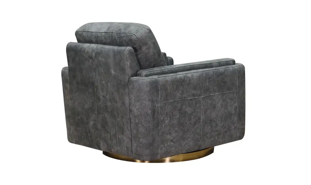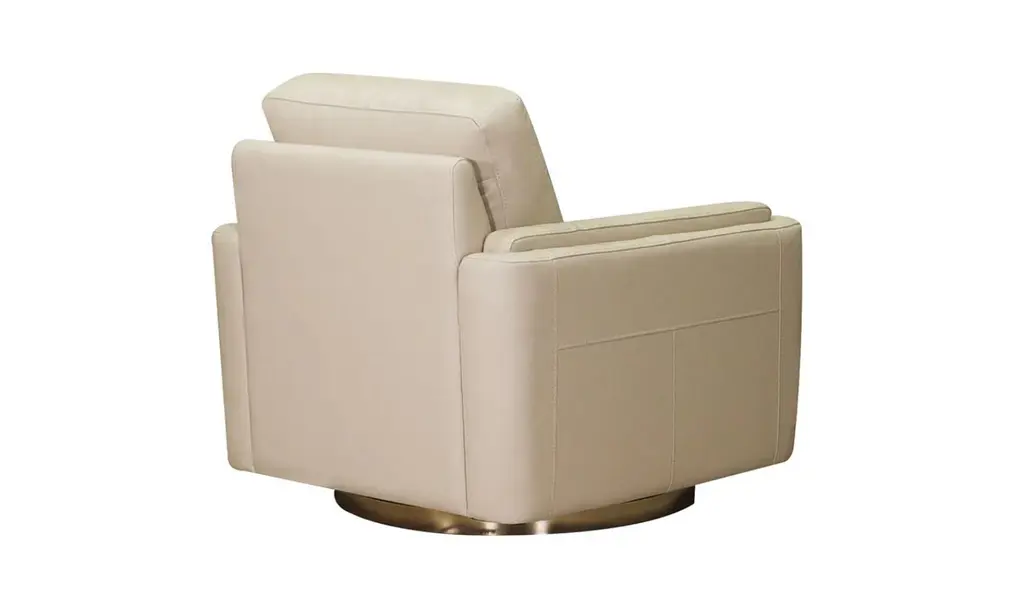 The Elm Swivel Leather Chair with Cushion Track Arm brings contemporary elegance to your living space. The Elm Swivel Chair Collection is distinguished by its unique arm design, offering a clean and tailored appearance that wraps around the front rail, enclosing a small arm cushion for enhanced comfort. The futuristic and modern flair of the Elm, complemented by a swivel base, creates a visually pleasing aesthetic that stands out in any room. Crafted from top-grain leather for the seating areas and armrests, with split-grain leather on the sides and back, this chair ensures both luxury and durability. The ultimate comfort seating combines premium goose feather and down, pocketed coils, and high-resiliency foam, while non-removable back cushions maintain a uniform look. The removable seat cushions with zip covers offer easy maintenance and protection. Built with a kiln-dried solid wood frame and reinforced with L-braced and glued corner blocks, the Elm chair promises maximum durability. The no-sag spring base and foam-padded sides and back provide added support and comfort. Experience flexibility with the 360-degree swivel feature, enhancing usability and style. The Elm Swivel Leather Chair is the perfect choice for those seeking comfort and forward-thinking design.
