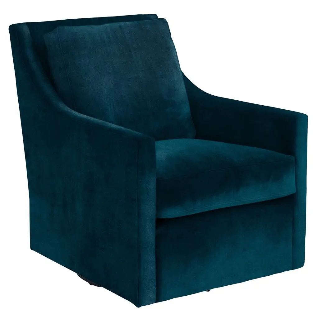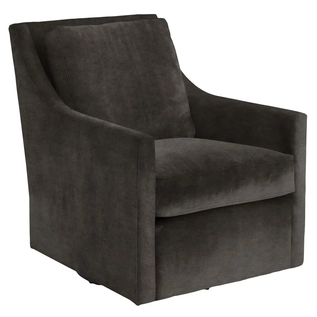 Exclusive to One Kings Lane: This swivel chair is designed with a sloped track arm and upholstered in Crypton --an eco-friendly high-performance fabric--which repels stains, spills, bacteria, and mold. Constructed of an engineered hardwood-laminate frame, eight-way hand-tied suspension system, and a spring foam cushion with down-proof ticking ensure long-lasting comfort and support. Each piece is handcrafted by skilled artisans in High Point, NC and offers a lifetime warranty on the frame and suspension system and a limited lifetime warranty on the seat cushion.