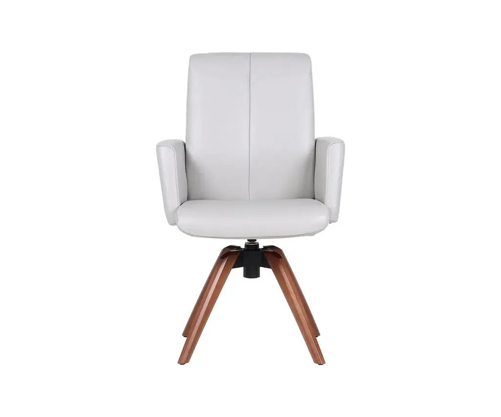 The Elyse 10000 Dining Chair features a swivel base and slim profile for easy maneuverability during everyday meals and special occasions. A rich, walnut-stained wood base and supple leather create a modern, versatile aesthetic, while dynamic lumbar support and the option to add arms complete the seating experience. Pair it with the Elyse Arm Kit for a custom upgrade.
