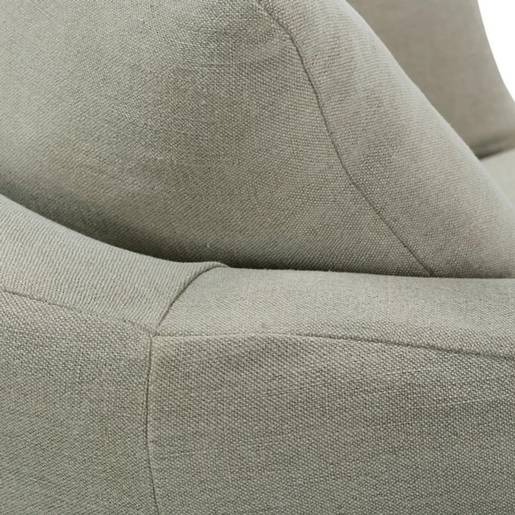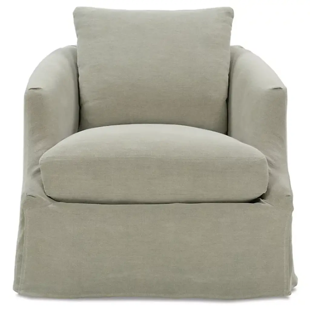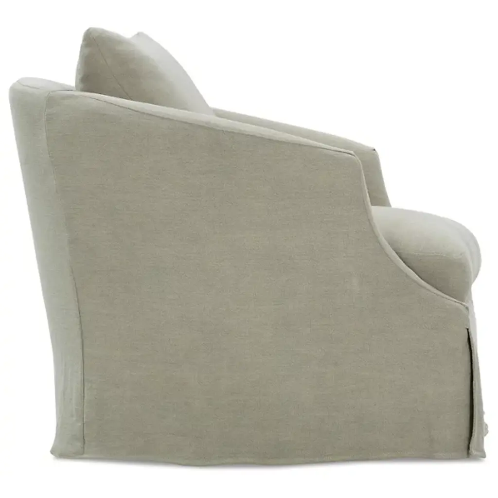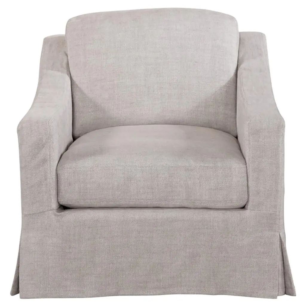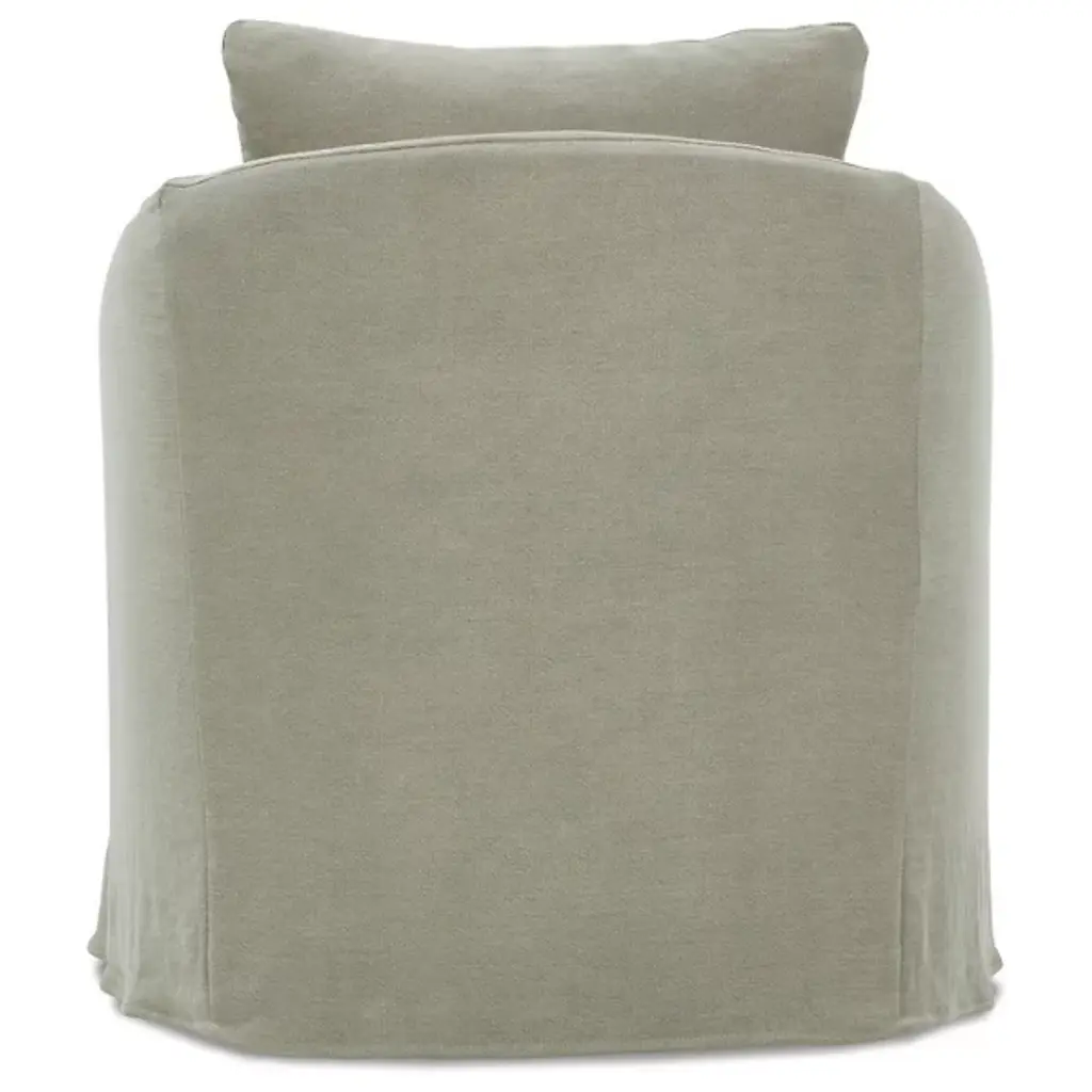 The Emmerson Slipcover Swivel Chair from Rowe Furniture fuses premium linen fabric with advanced cushion technology. Its high-resiliency polyurethane core delivers optimal support while maintaining its shape. A layer of polyester fiber enhances the chair’s sink-in comfort, while environmentally conscious manufacturing eliminates harmful chemicals. Its removable cover allows easy maintenance - cold water and a gentle cycle preserve fabric quality. With its fluid rotation mechanism and considered proportions, this chair excels in both form and function.