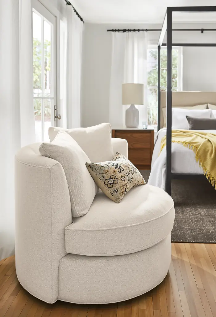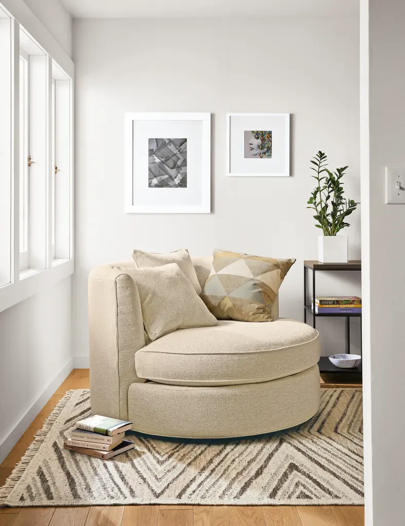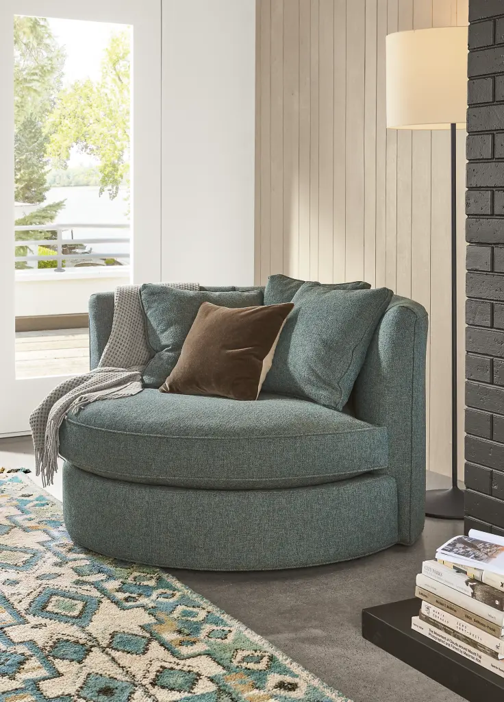 This unique chair was made for movie nights and great books. The generous scale of Eos is indulgent for one, and a cozy island for two. The luxuriously deep seat and plush cushions envelop you in comfort.