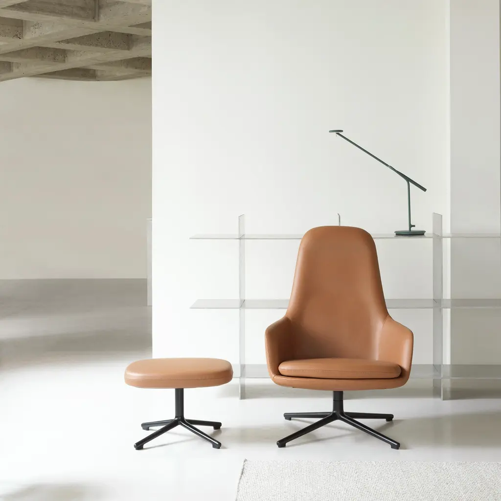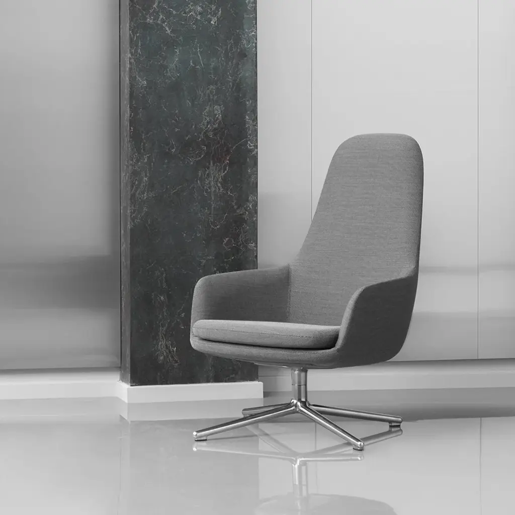Era’s high-back version has added support for the neck, making it perfect for resting while the swivel base allows for ease of movement. Simon Legald’s award-winning chair exhibits streamlined contours and a generously proportioned molded cushion that bespeaks comfort. The precisely honed silhouette is complemented by a wide range of upholstery choices in premium fabrics or whispery soft leather.