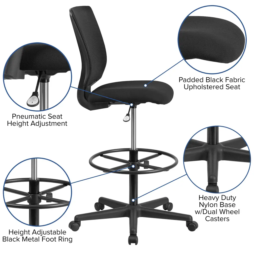 Ergonomic Mid-Back Mesh Drafting Chair With Fabric Seat And Adjustable Foot Ring