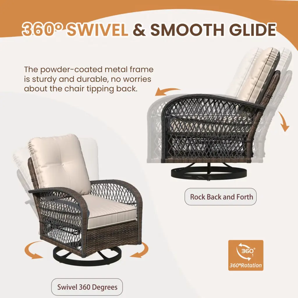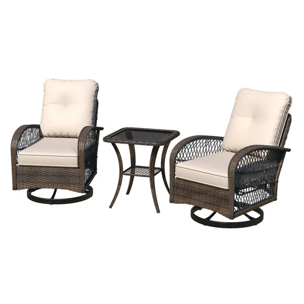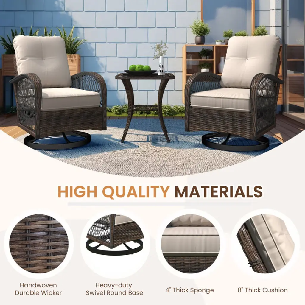 Erommy Outdoor Swivel Rocker Bistro Set - 3 Piece Wicker Patio Set With 2 Swivel Rocking Chairs, Cushions, And Tempered Glass Side Table