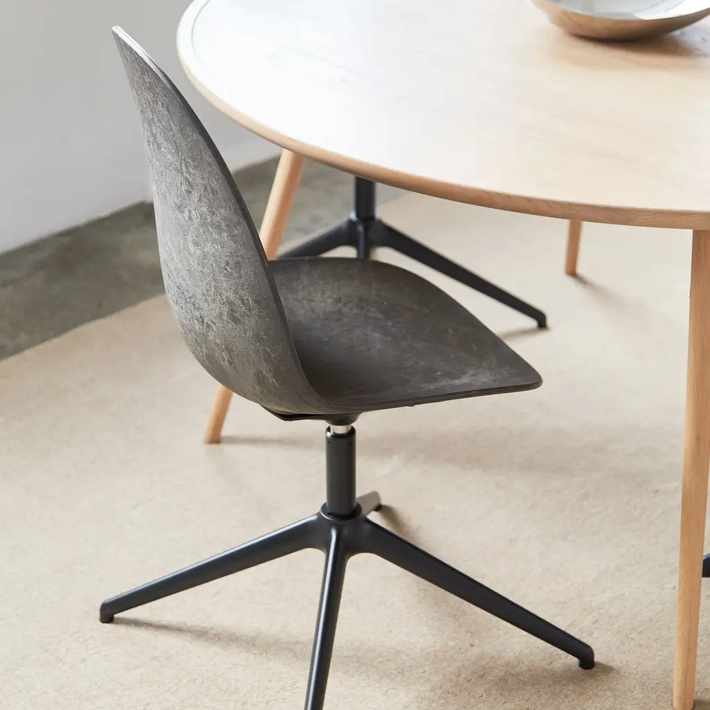 The Eternity Swivel Chair, designed by Space Copenhagen, is a sustainable piece made from innovative Matek® material and is available in 4 colors. This material combines recycled fibers with plastic waste. The base is crafted from 96% recycled aluminum and comes in a polished aluminum or black finish. Designed for both private and public spaces, the chair is built for disassembly, ensuring all components can be recycled.