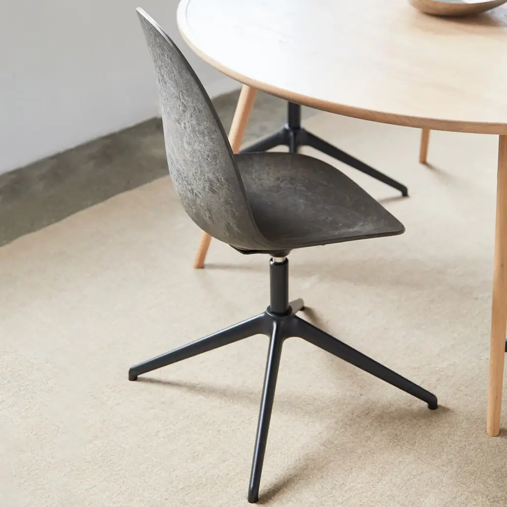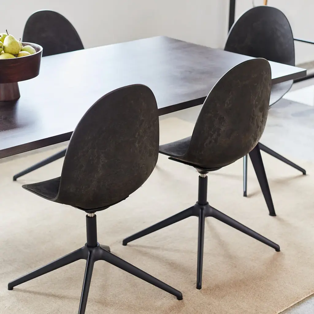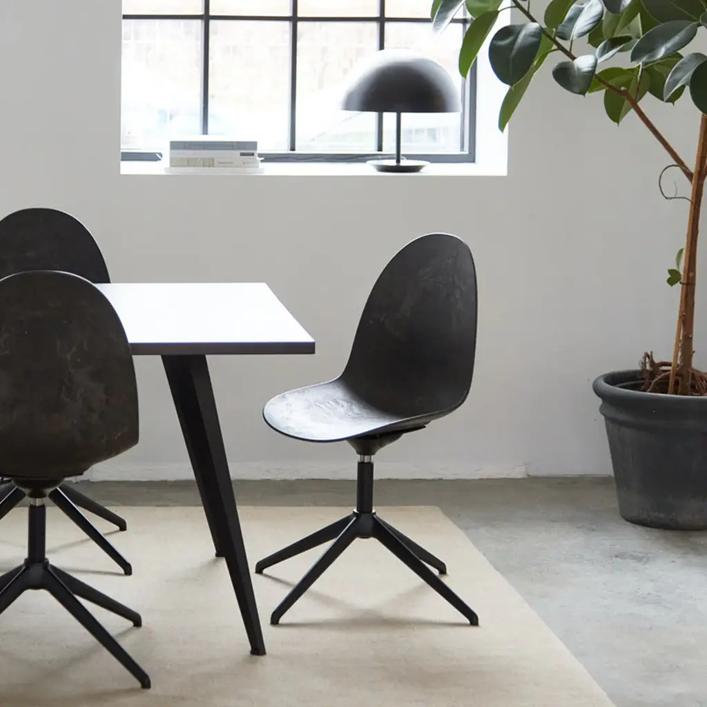 The shell of the Eternity chair is made of Matek. Innovative technology allows us to recycle fibre-based waste materials with recycled plastic waste. The chair itself is a very comfortable chair with industrial and sculptural features. Eternity is designed for disassembly, meaning that the design allows each component in its purest form to recycle into new production circles. Durable for both private and public use.
