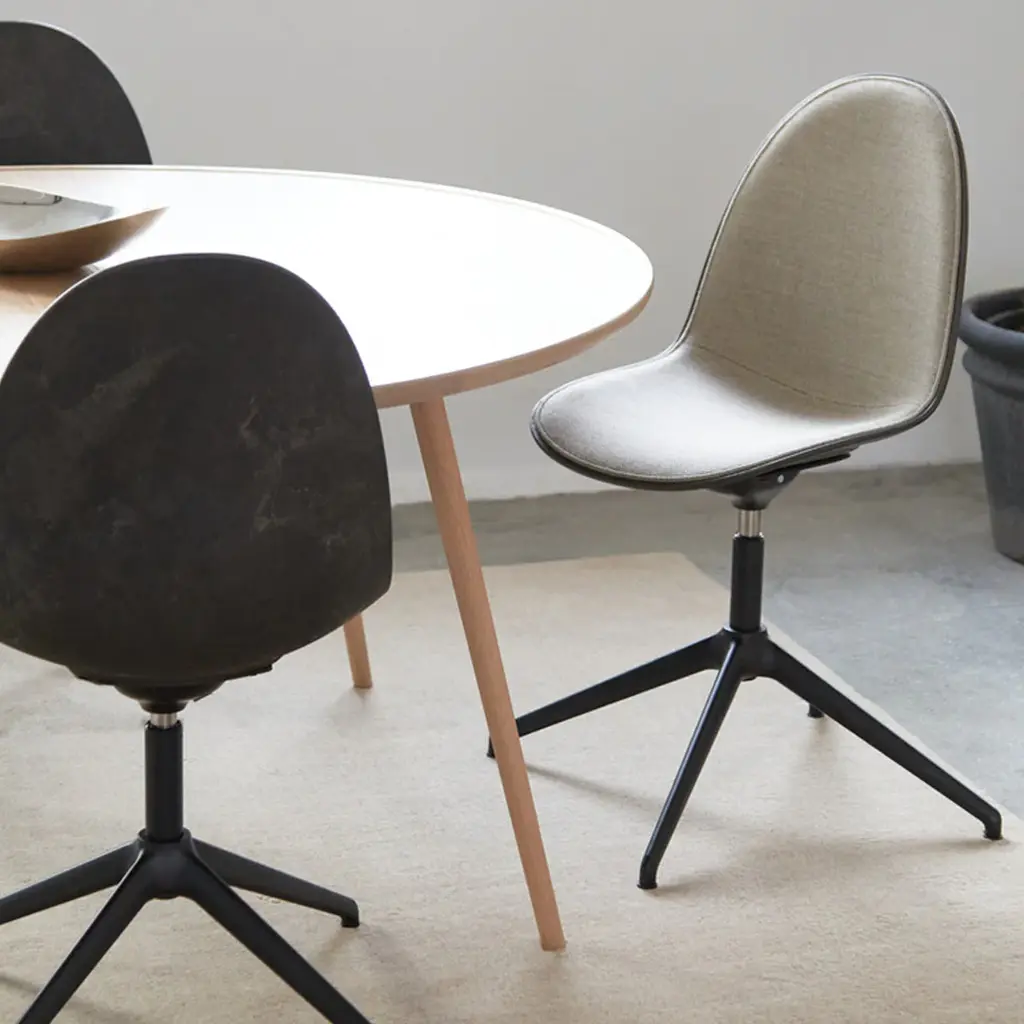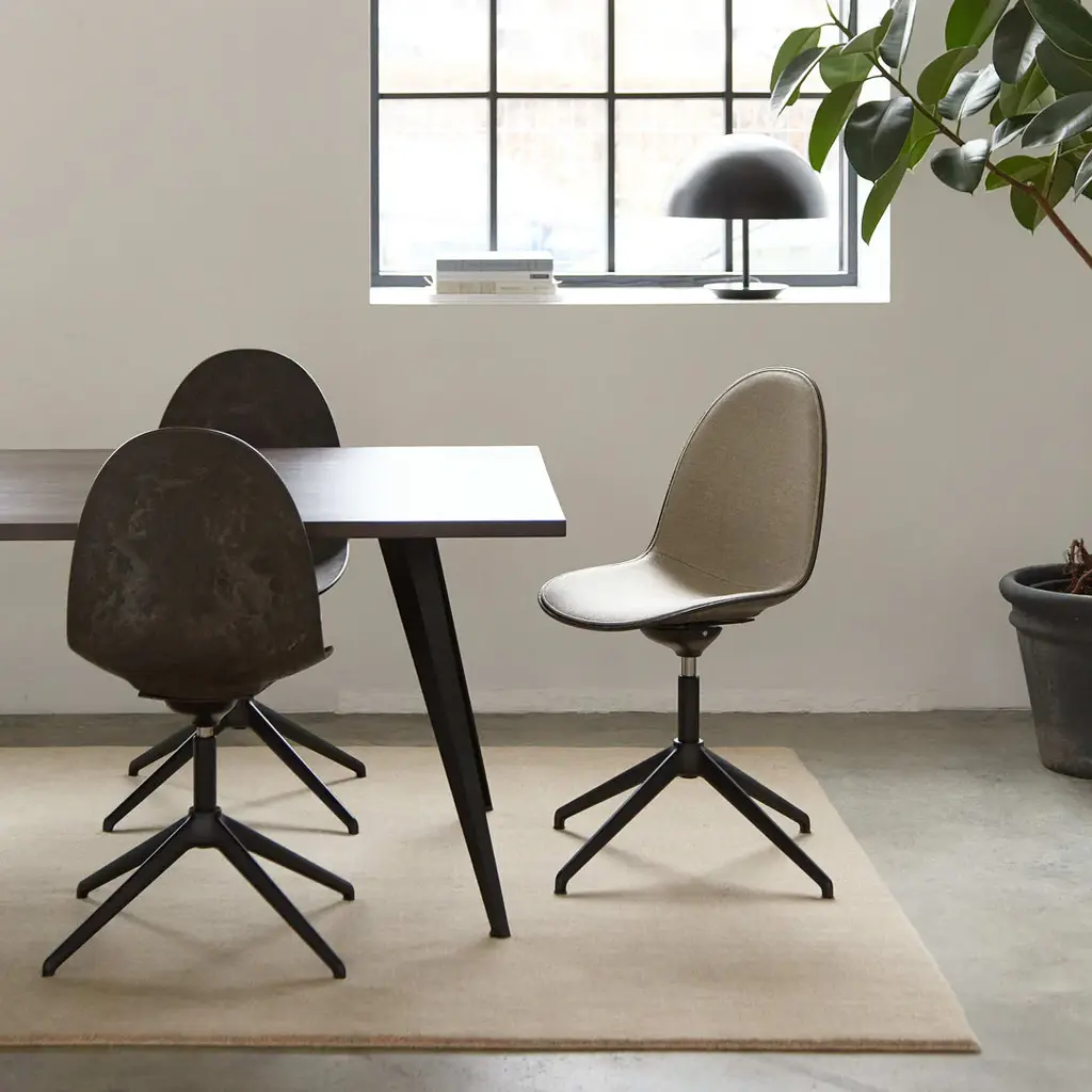 The shell of the Eternity chair is made of Matek. Innovative technology allows us to recycle fibre-based waste materials with recycled plastic waste. The chair itself is a very comfortable chair with industrial and sculptural features. Eternity is designed for disassembly, meaning that the design allows each component in its purest form to recycle into new production circles. Durable for both private and public use.