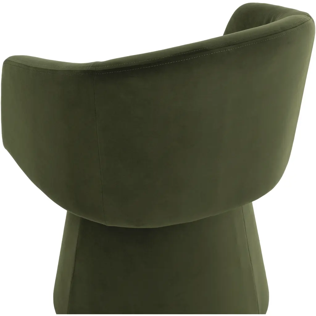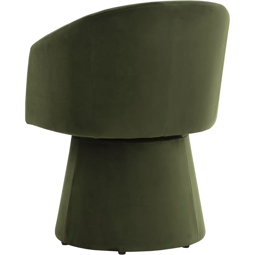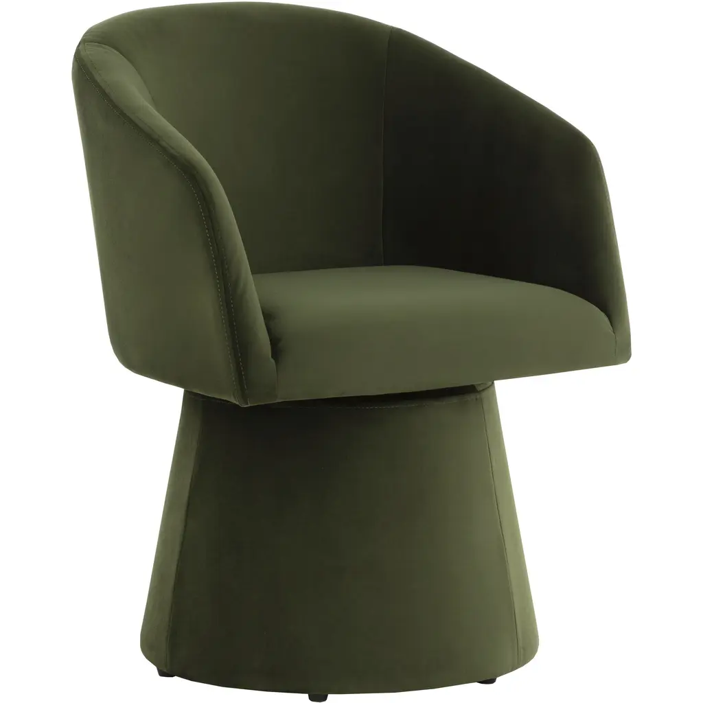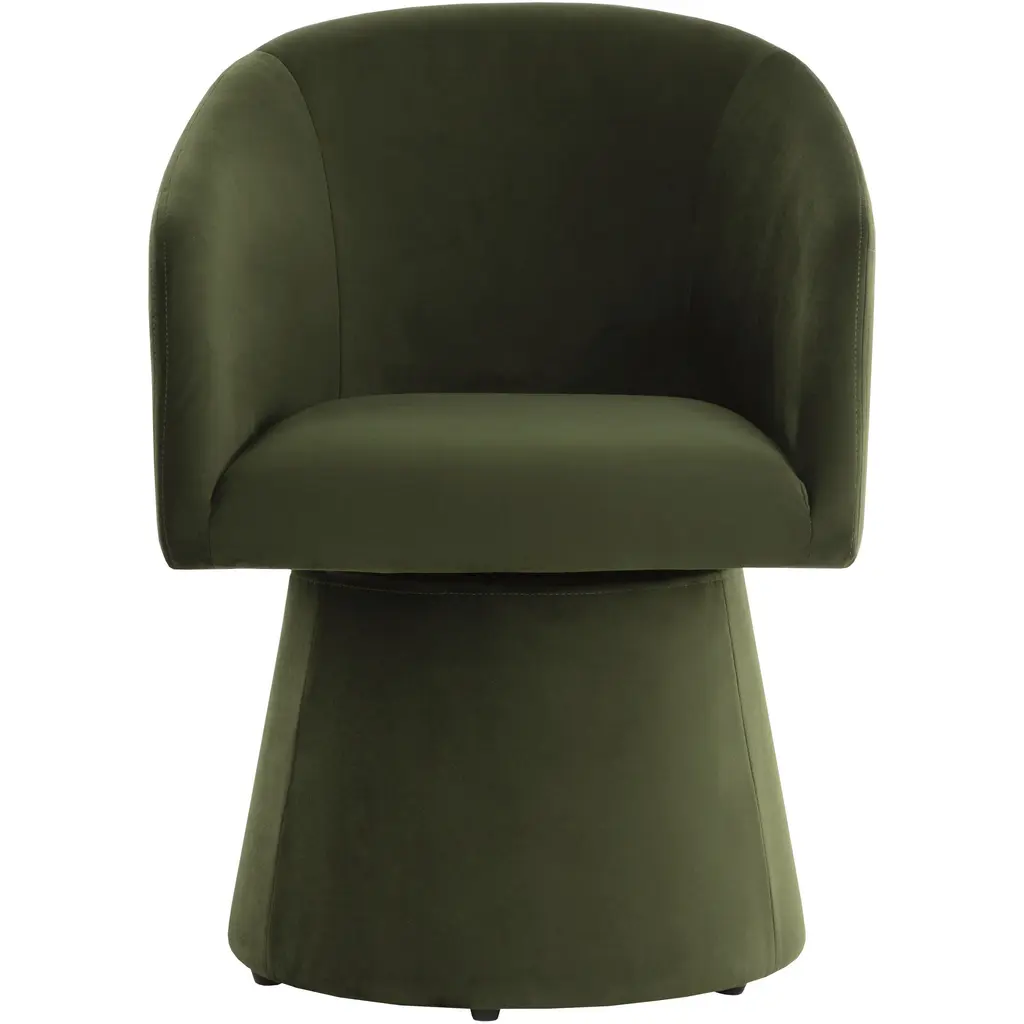 The Etta Swivel Dining Armchair reimagines modern style as thoughtful simplicity in action. Fully upholstered in moss green fabric and with a 360-degree swivel, this dining armchair makes the easy extraordinary.