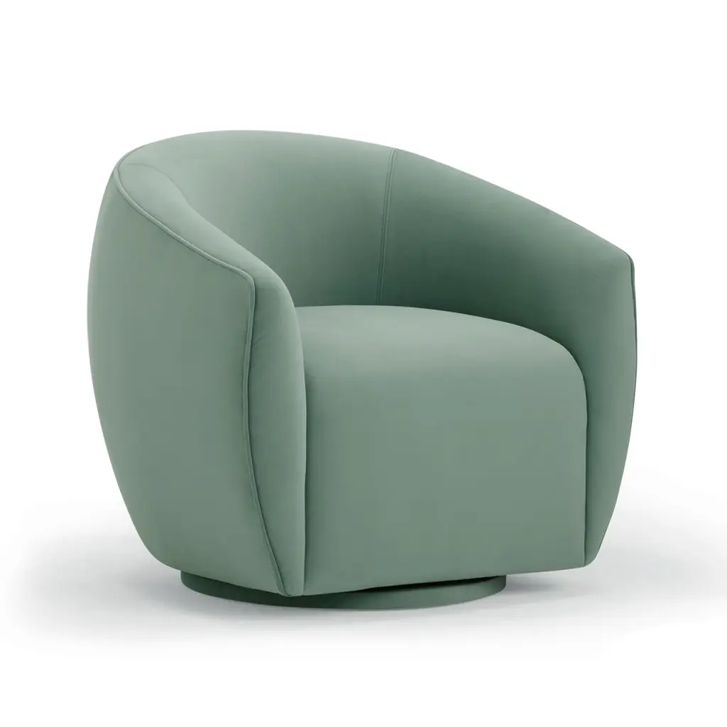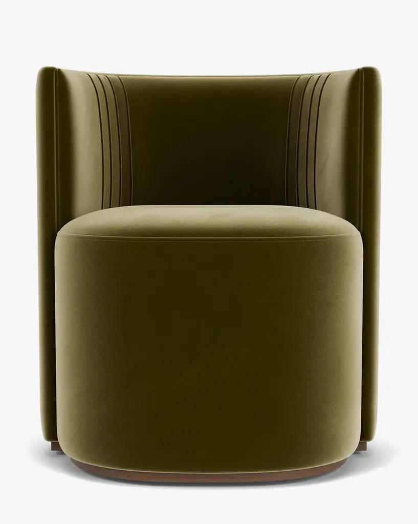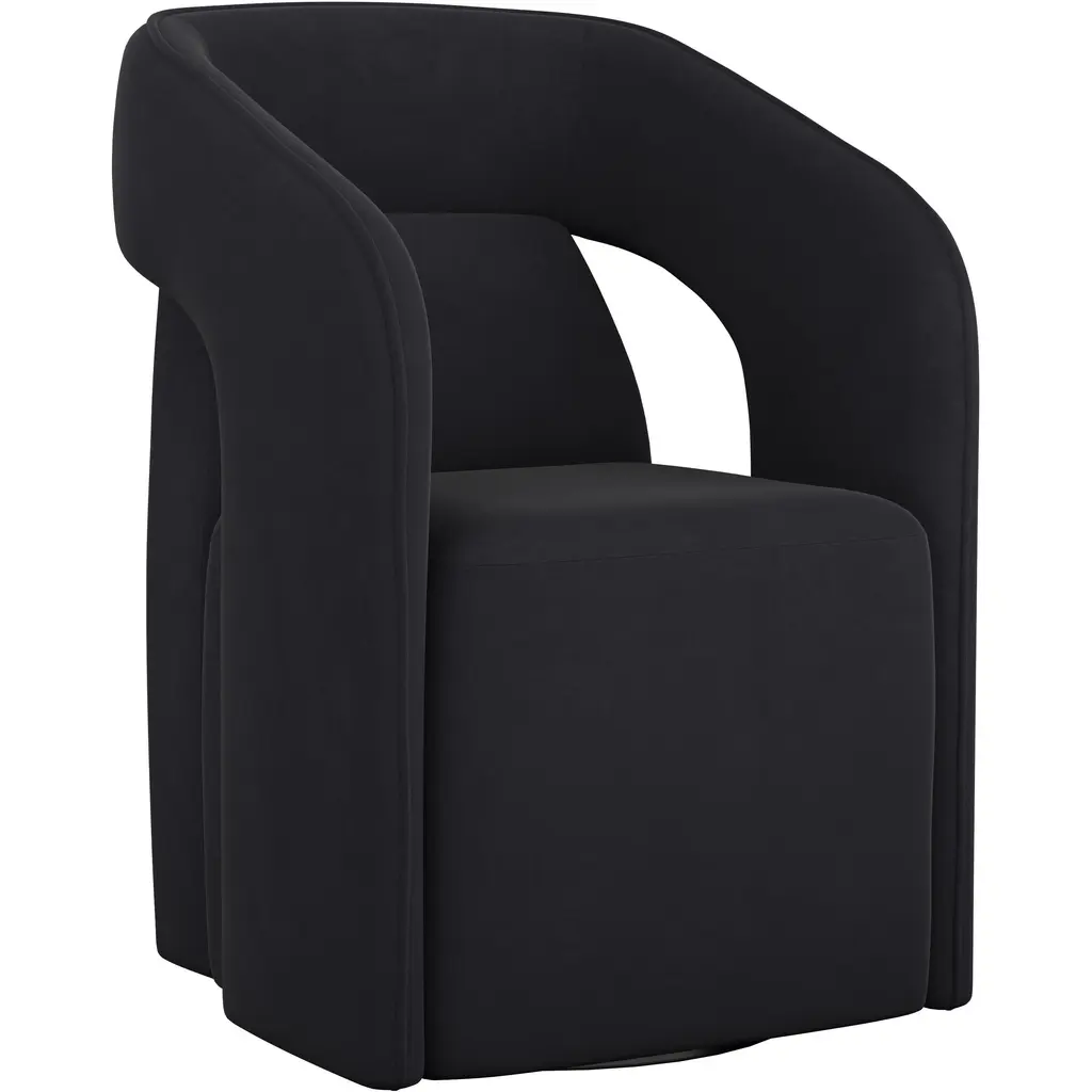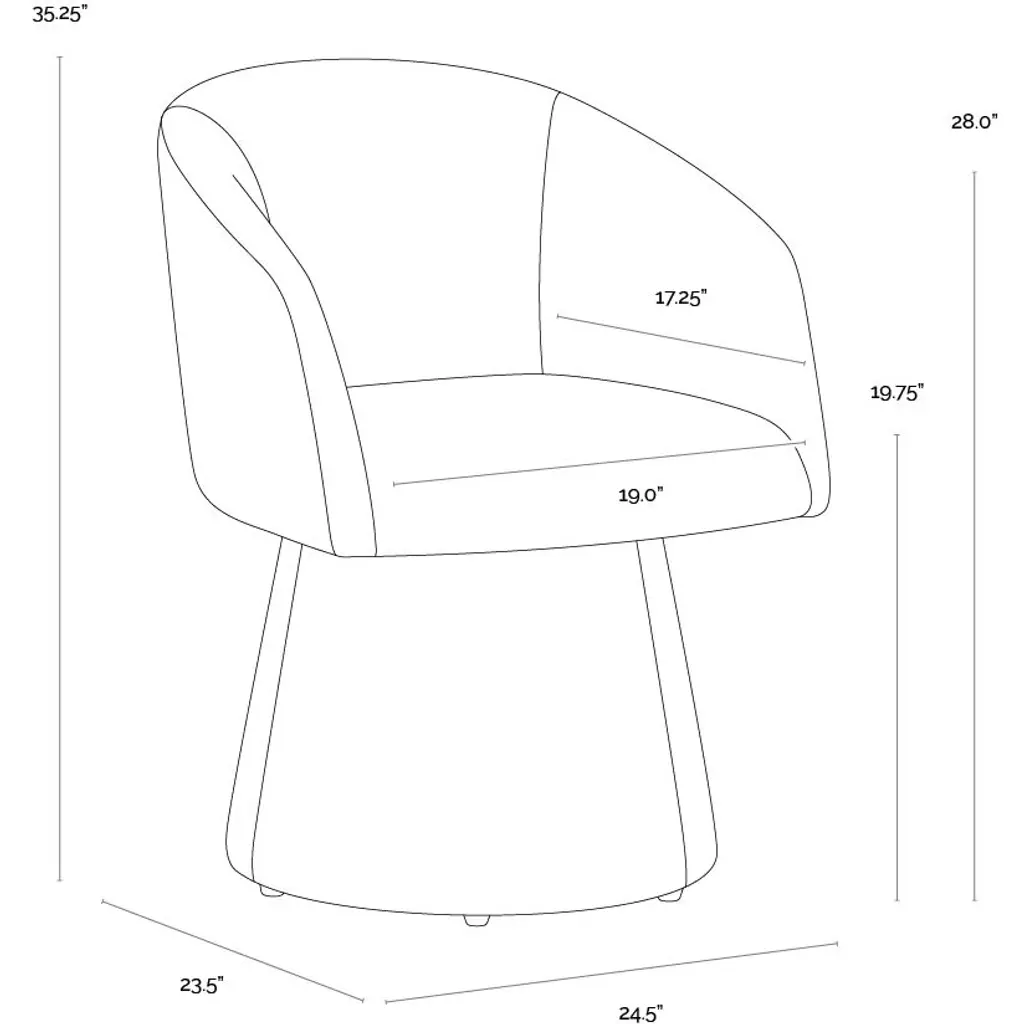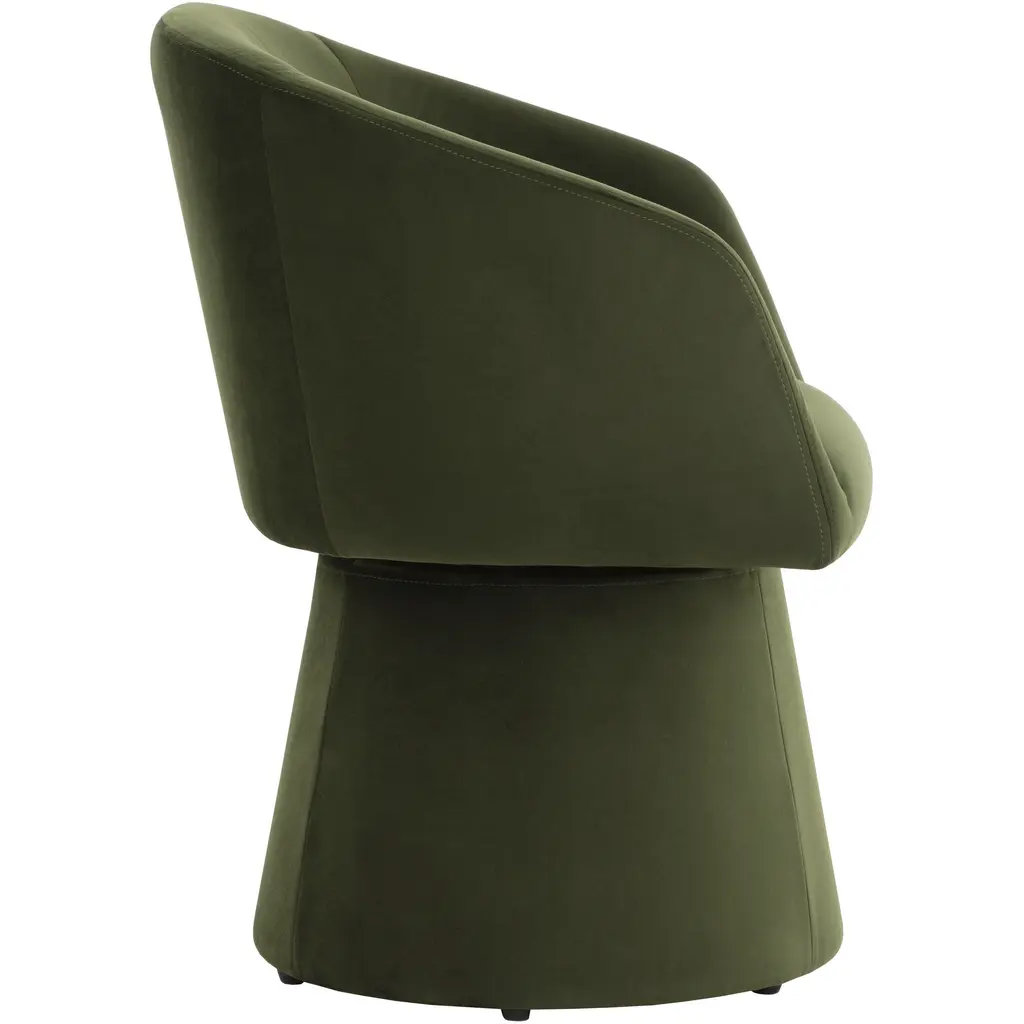 The Etta Swivel Dining Armchair reimagines modern style as thoughtful simplicity in action. Fully upholstered in moss green fabric and with a 360-degree swivel, this dining armchair makes the easy extraordinary.