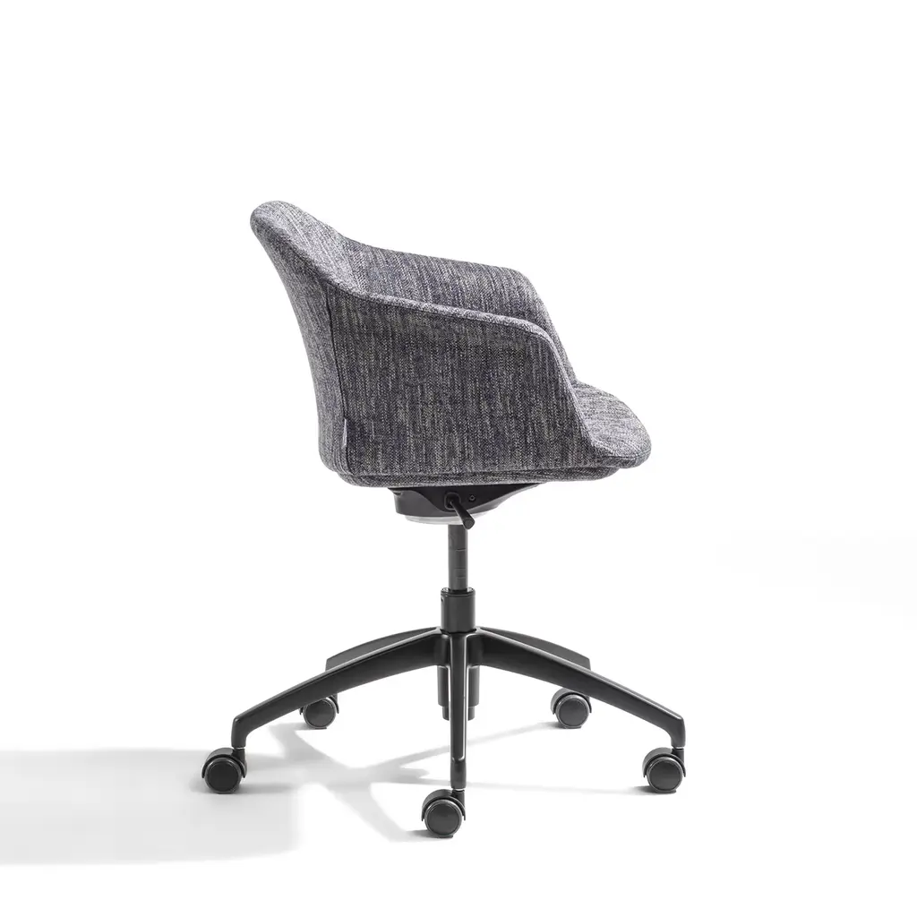 The Eva Swivel Chair combines modern elegance with functionality. It features a five-star base and a sleek, molded polyurethane shell, padded and upholstered in luxurious Calvino fabric for superior comfort. Designed for versatility, it includes a gas height adjustment and a tilt control mechanism, ensuring personalized support and ease of use. A perfect balance of style and performance, this chair enhances any sophisticated workspace or interior.
