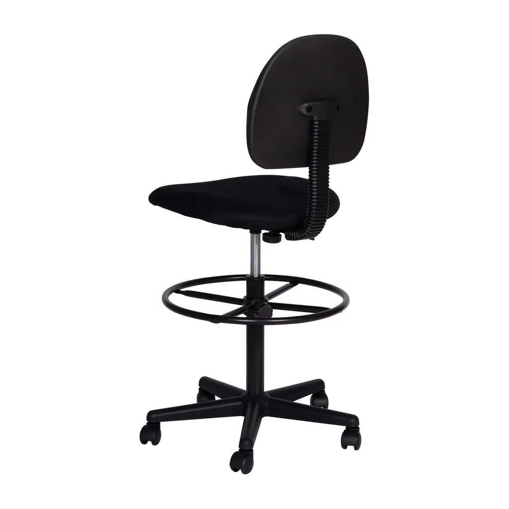 If you sit for long hours throughout the day you may benefit from this upholstered drafting chair. Draft chairs are essential for any profession where work surfaces are above standard height, such as lab technicians, architects, graphic artists, or any other creative assignment. They can also make a great chair for any job requiring employees to be at eye contact level with customers, such as receptionists or cashiers. This chair was designed to support the mid-to-upper back region. Chair easily swivels 360 degrees to get the maximum use of your workspace without strain. The pneumatic adjustment lever will allow you to easily adjust the seat to your desired height. The foot ring can also be adjusted to your height preference for added comfort. This versatile chair is sure to make an impact whether it is used in the home or at the office.