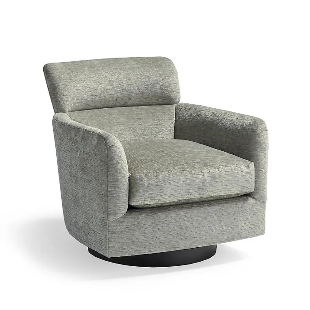 We’ve reimagined a relaxed lounger style with a sleeker silhouette and a 360 swivel base, merging comfort, utility and aesthetics. Our Fairbanks Swivel Chair is expertly handcrafted with an eight-way hand-tied seat. The cushion is carefully crafted with high-density foam and a channel-quilted envelope of combed Ultima Supreme fibers, duck feathers and down. Upholster in your choice of over 150 premium fabrics. Hardwood frame Heat-tempered, double-coil steel springs are eight-way hand-tied, keeping springs from shifting and establishing long-term support Cushion crafted from polyester-wrapped high-density urethane foam in a channel-quilted cotton outer envelope with a blend of Ultima Supreme combed fibers, duck feathers and down Loose seat cushion; tight back cushion Choose from more than 150 fabrics in the Premium Upholstery Collection Velvet naturally ages over time, resulting in light marks or bruising that add to its character and sheen Performance fabric resists stains and repels water and oils, ensuring easy cleaning Leather is a natural material, retaining character marks and subtle shade variations; no two pieces are exactly alike Performance leather is treated to reduce scratching, fading, staining and color variation On leather option, velvet decking and cushion underside allow air to flow from the cushion through the decking 360 exposed platform swivel Handcrafted in the USA At Frontgate, our primary focus is quality. We guarantee that every product we sell will stand up to the supreme test – our customers' satisfaction. To learn more about our policies, visit our Shipping & Processing, Returns & Exchanges and Warranty & Price Guarantee pages. We’ve reimagined a relaxed lounger style with a sleeker silhouette and a 360 swivel base, merging comfort, utility and aesthetics. Our Fairbanks Swivel Chair is expertly handcrafted with an eight-way hand-tied seat. The cushion is carefully crafted with high-density foam and a channel-quilted envelope of combed Ultima Supreme fibers, duck feathers and down. Upholster in your choice of over 150 premium fabrics. Hardwood frame Heat-tempered, double-coil steel springs are eight-way hand-tied, keeping springs from shifting and establishing long-term support Cushion crafted from polyester-wrapped high-density urethane foam in a channel-quilted cotton outer envelope with a blend of Ultima Supreme combed fibers, duck feathers and down Loose seat cushion; tight back cushion Choose from more than 150 fabrics in the Premium Upholstery Collection Velvet naturally ages over time, resulting in light marks or bruising that add to its character and sheen Performance fabric resists stains and repels water and oils, ensuring easy cleaning Leather is a natural material, retaining character marks and subtle shade variations; no two pieces are exactly alike Performance leather is treated to reduce scratching, fading, staining and color variation On leather option, velvet decking and cushion underside allow air to flow from the cushion through the decking 360 exposed platform swivel Handcrafted in the USA At Frontgate, our primary focus is quality. We guarantee that every product we sell will stand up to the supreme test – our customers' satisfaction. To learn more about our policies, visit our Shipping & Processing, Returns & Exchanges and Warranty & Price Guarantee pages.