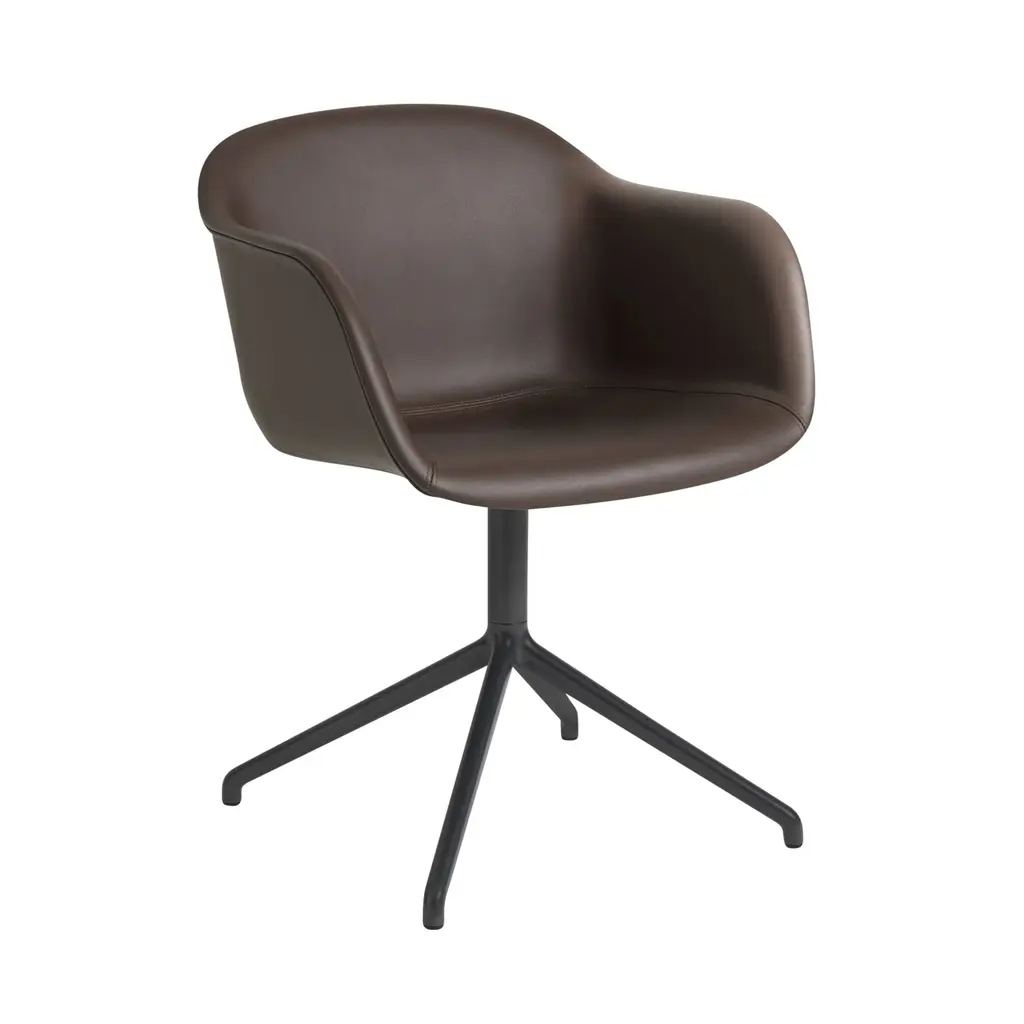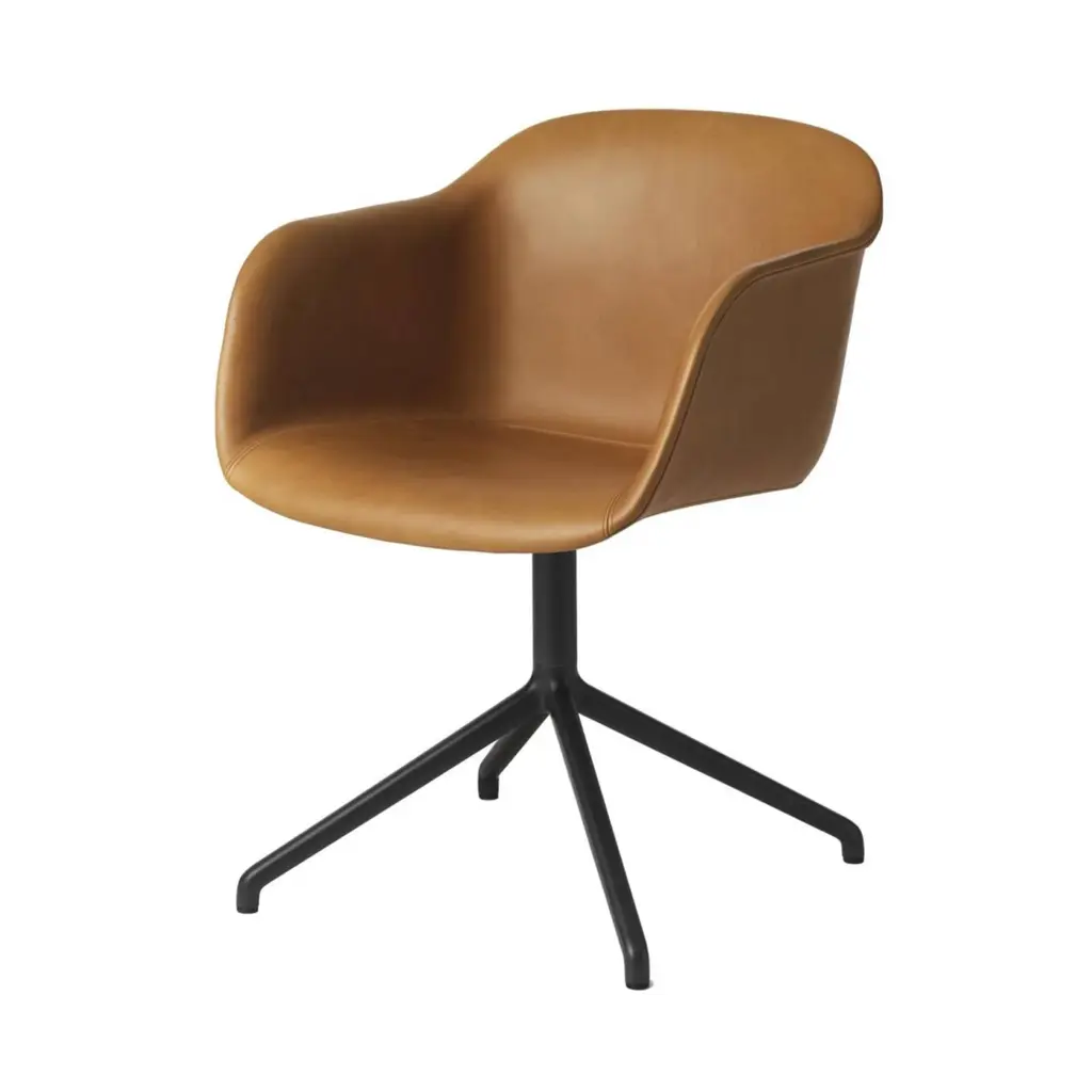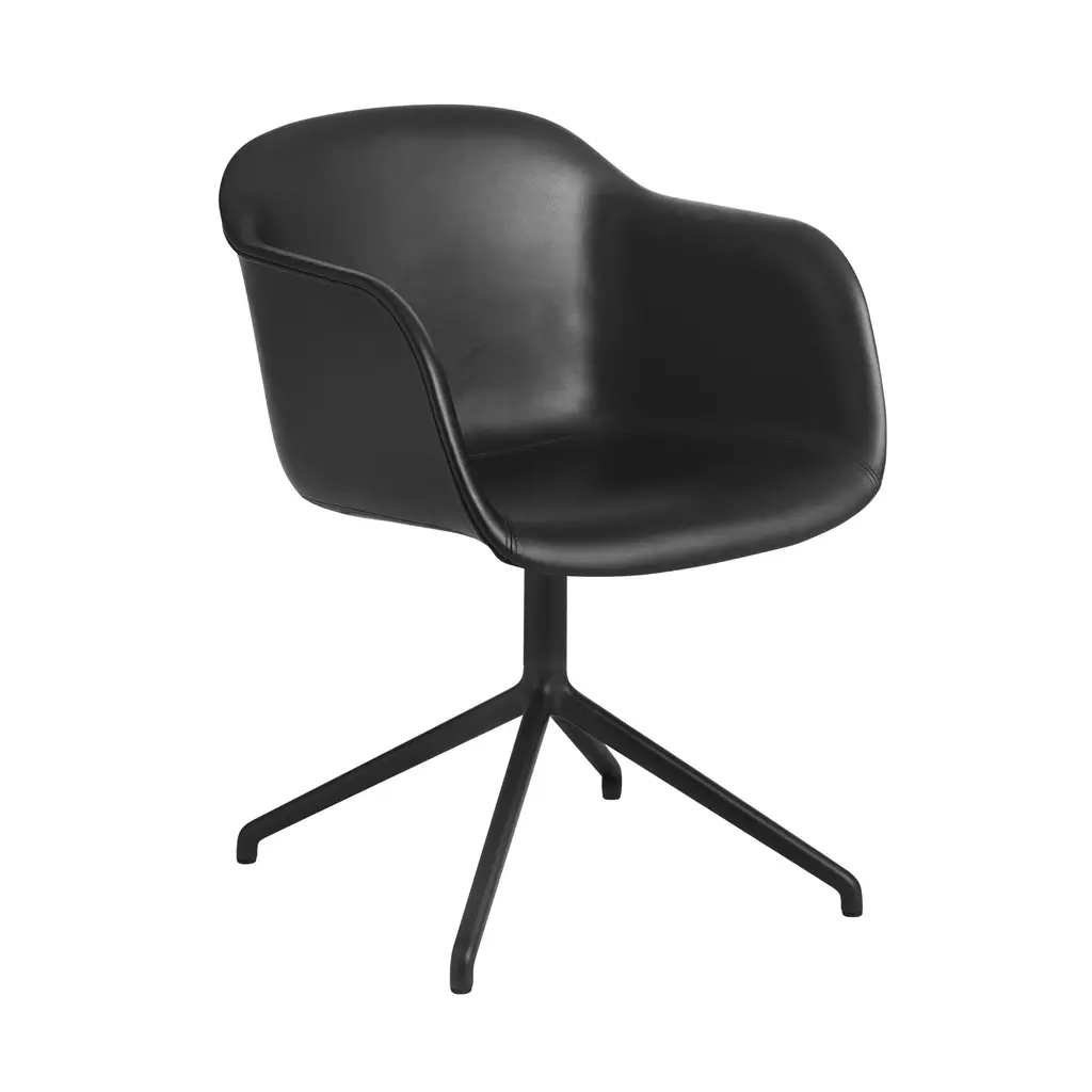Upholstery adds a luxurious overlay to the Fiber Chair, called "design without eccentricity" from Copenhagen-based creative duo Iskos-Berlin. In this swivel base version especially suited to a desk or work table, the designers reworked the classic shell chair, updating this minimalist molded form in an innovative material consisting of a mix of plastic and wood fiber. Friendly and embracing curves provide extended comfort while taking up relatively little space in a room.