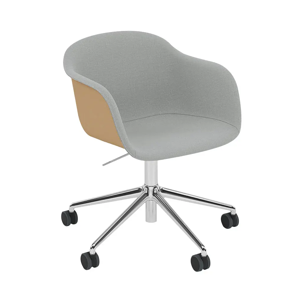 Fiber Armchair: Swivel Base With Castors & Gaslift + Front Upholstered + Recycled Shell