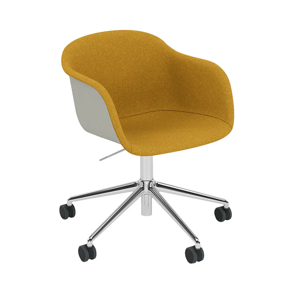 Fiber Armchair: Swivel Base With Castors & Gaslift + Front Upholstered + Recycled Shell