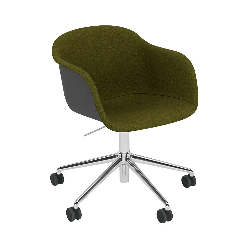 Fiber Armchair: Swivel Base With Castors & Gaslift + Front Upholstered + Recycled Shell