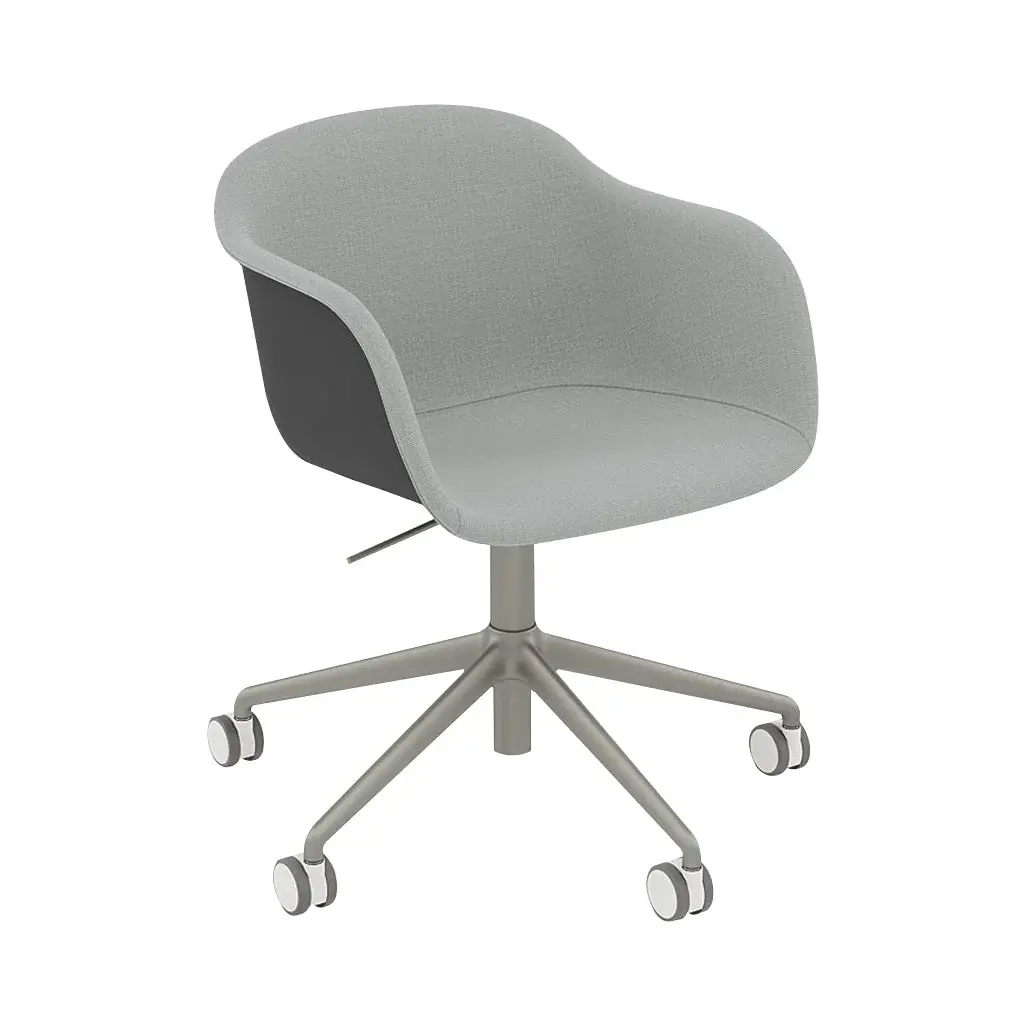 Fiber Armchair: Swivel Base With Castors & Gaslift + Front Upholstered + Recycled Shell