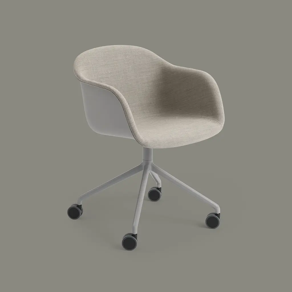 Fiber Armchair Swivel Base With Castors: Front Upholstered + Recycled Shell