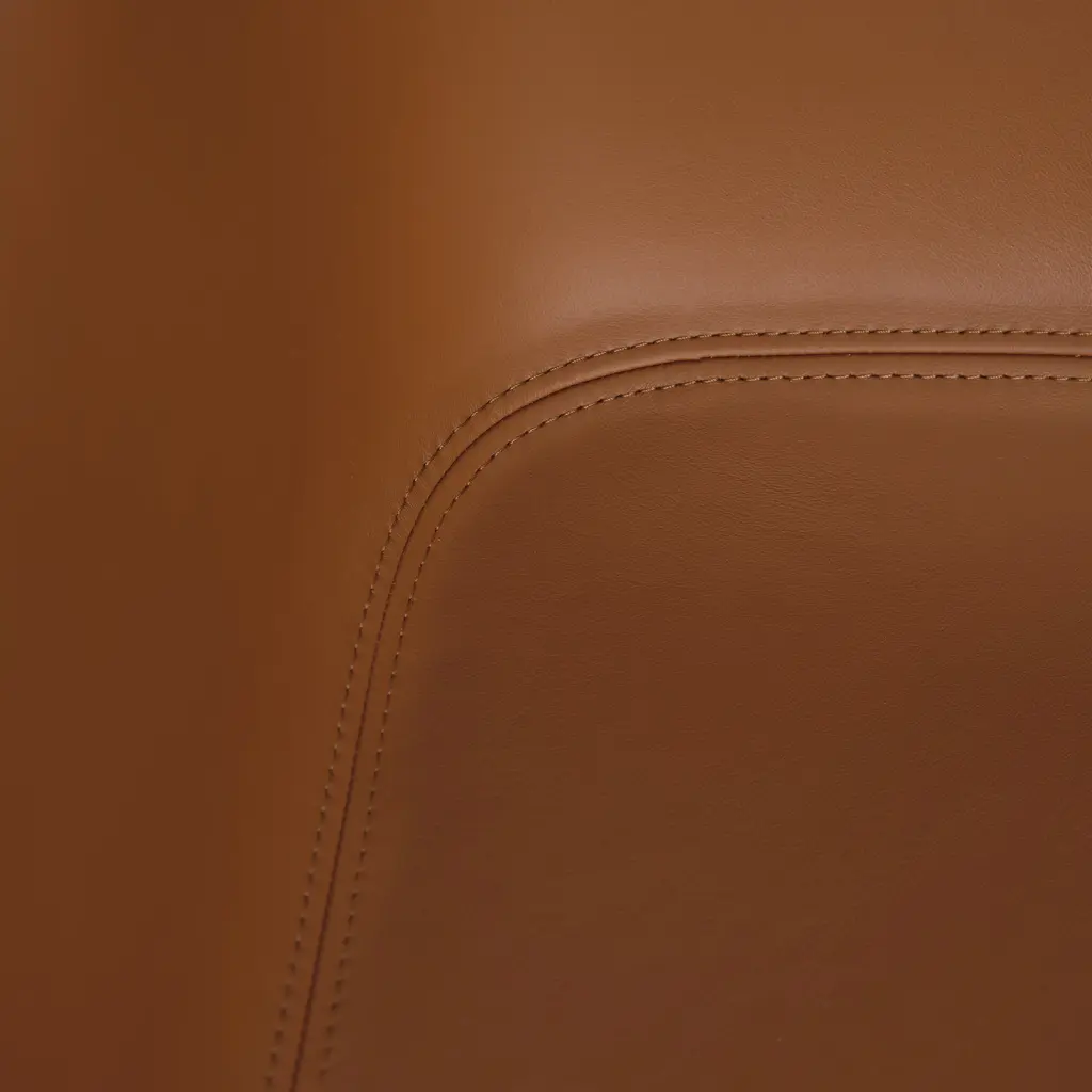 Muuto’s minimalist linchpin Fiber gets a sustainable rethink in an innovative molded composite with an armchair version that also offers custom front upholstery and a convenient auto-return swivel base. The next-gen material combines recycled plastic (min. 80% content) and FSC-certified wood fibers that deliver a soft inviting look with its matte-textured finish.