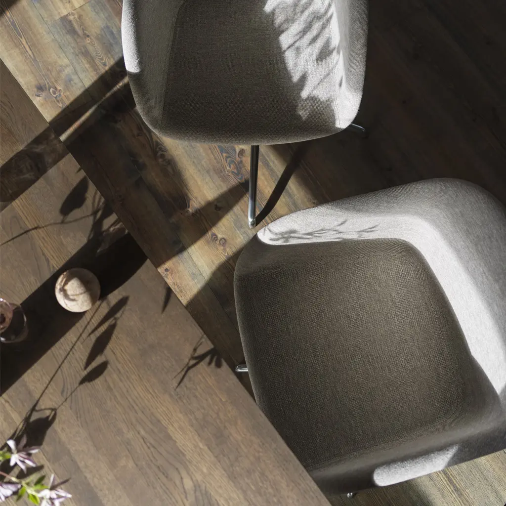 Along with a swivel base to easily pivot the seat and automatic return, design duo Iskos-Berlin offer customized upholstery with their shell armchair. A wide range of fabric and leather selections brings a made-to-order look to suit home, work or educational environs. And the signature curves bespeak lasting comfort, wedded with the convenience of the functional metal base in matte powder-coated colors or gleaming polished aluminum.
