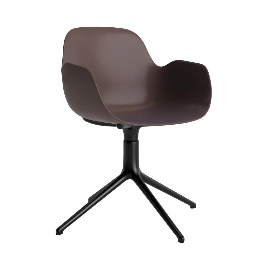 A clever mix of contemporary sensibility and modern design ideal for work or home. The Fiber Armchair Fiber Armchair with Swivel Base from Muuto balances atop a structure of slender aluminum legs, extending a central stem higher to a one-piece shell seat made of molded plastic enhanced with at least a quarter of its mass in wood fibers. This sustainable seat offers a stylish and tactile texture, while the shape offers an enveloping retro appeal with a classic, professional character.