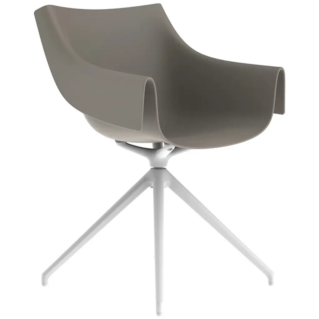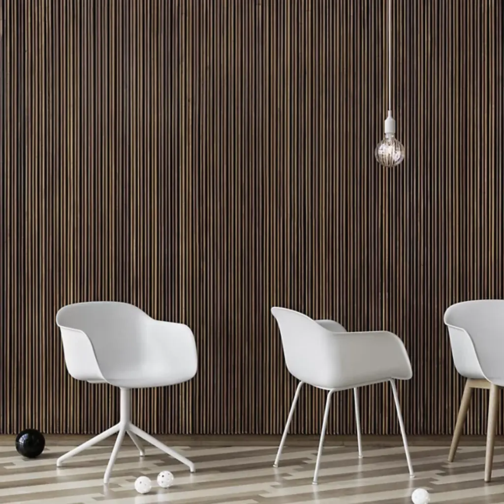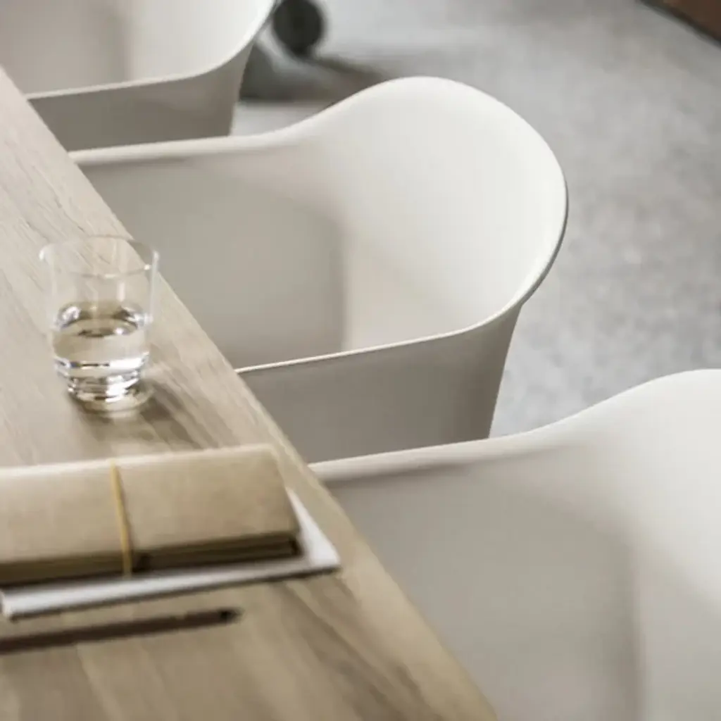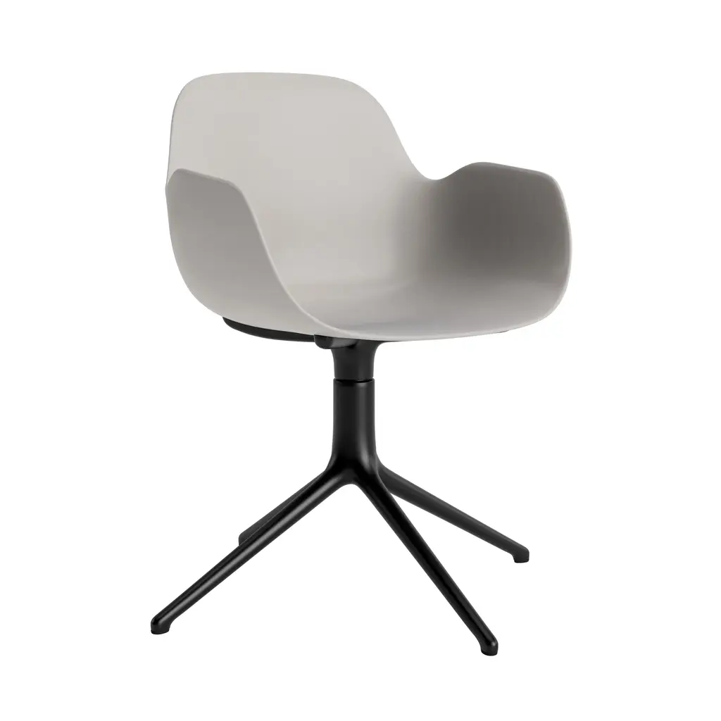 A clever mix of contemporary sensibility and modern design ideal for work or home. The Fiber Armchair Fiber Armchair with Swivel Base from Muuto balances atop a structure of slender aluminum legs, extending a central stem higher to a one-piece shell seat made of molded plastic enhanced with at least a quarter of its mass in wood fibers. This sustainable seat offers a stylish and tactile texture, while the shape offers an enveloping retro appeal with a classic, professional character.