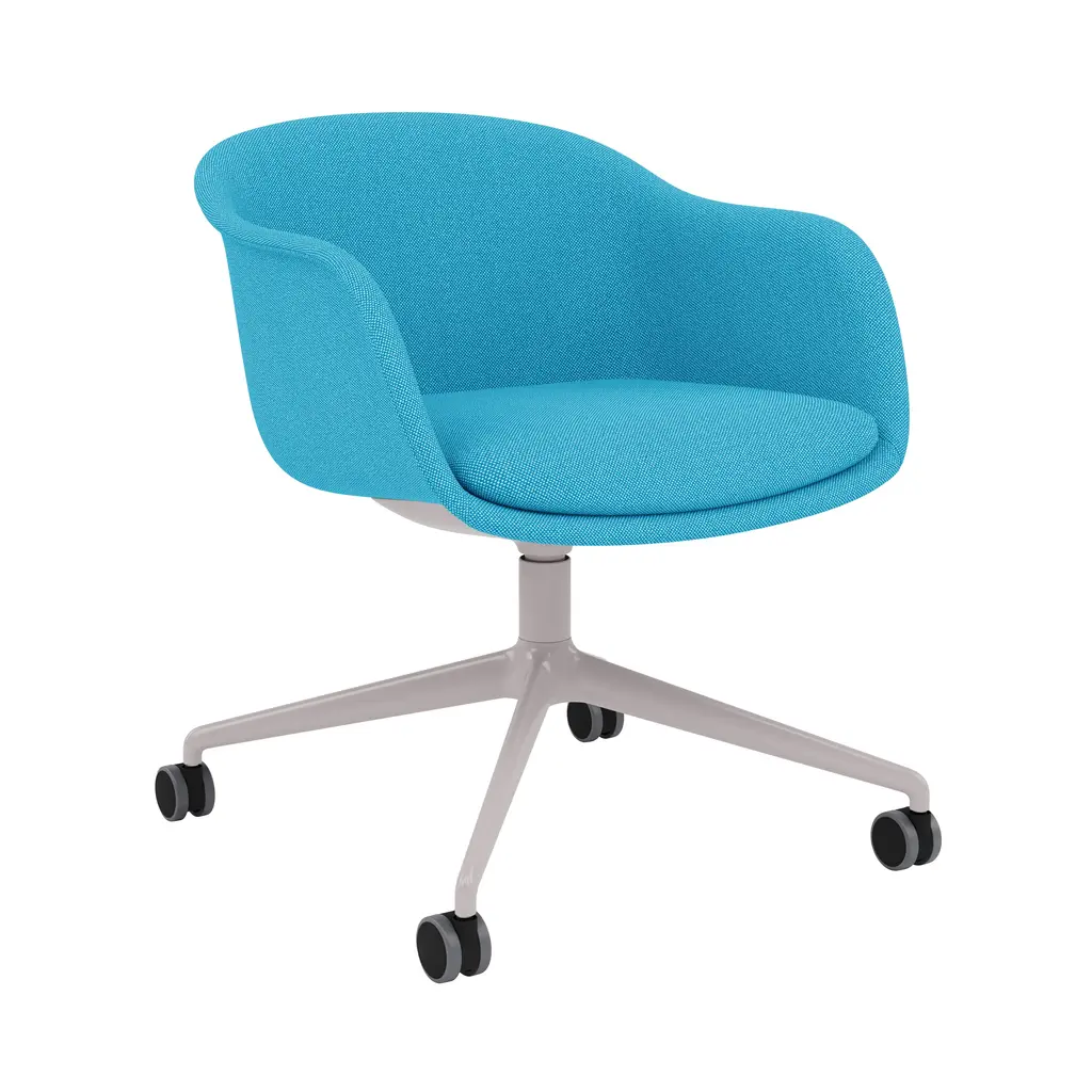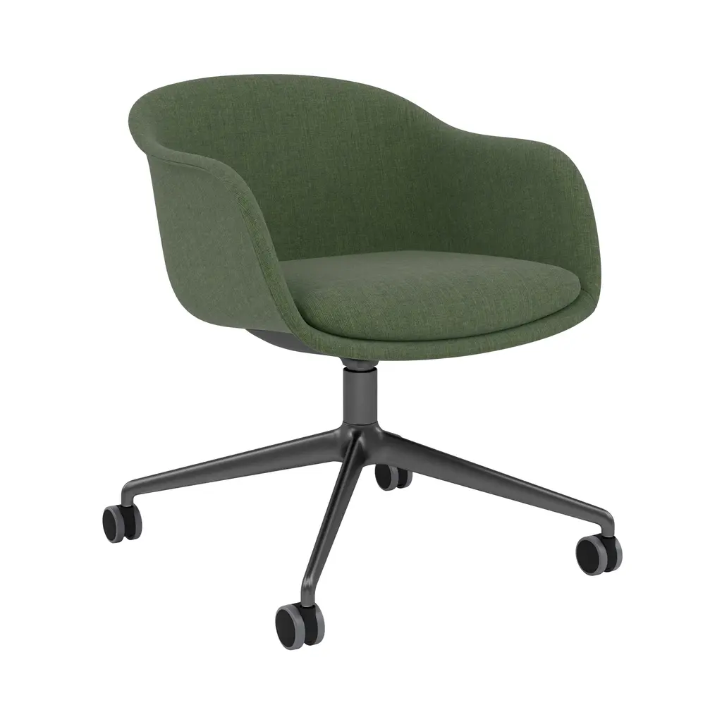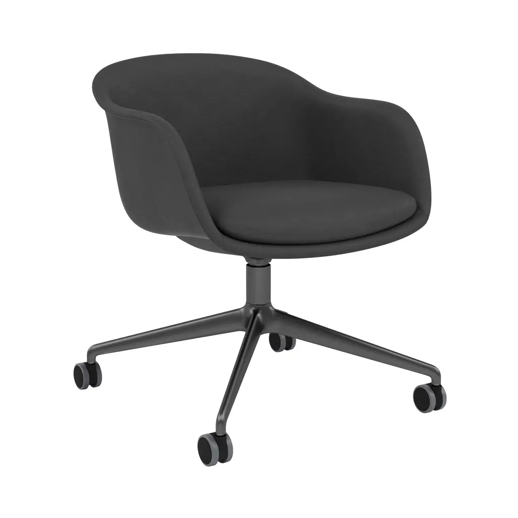 Muuto expands on the Fiber series of sculptural yet distinctly ergonomic seating from Copenhagen-based design duo Iskos-Berlin with a work-oriented version set on a swivel base with castors. Fiber Conference Armchair's built-in comfort makes it ideal in any setting for extended time spent seated, with its embracing interior shell made of 99% recycled plastic. The spacious seat and user-friendly contours are fully upholstered with a soft fixed cushion to suit public spaces and the home alike.