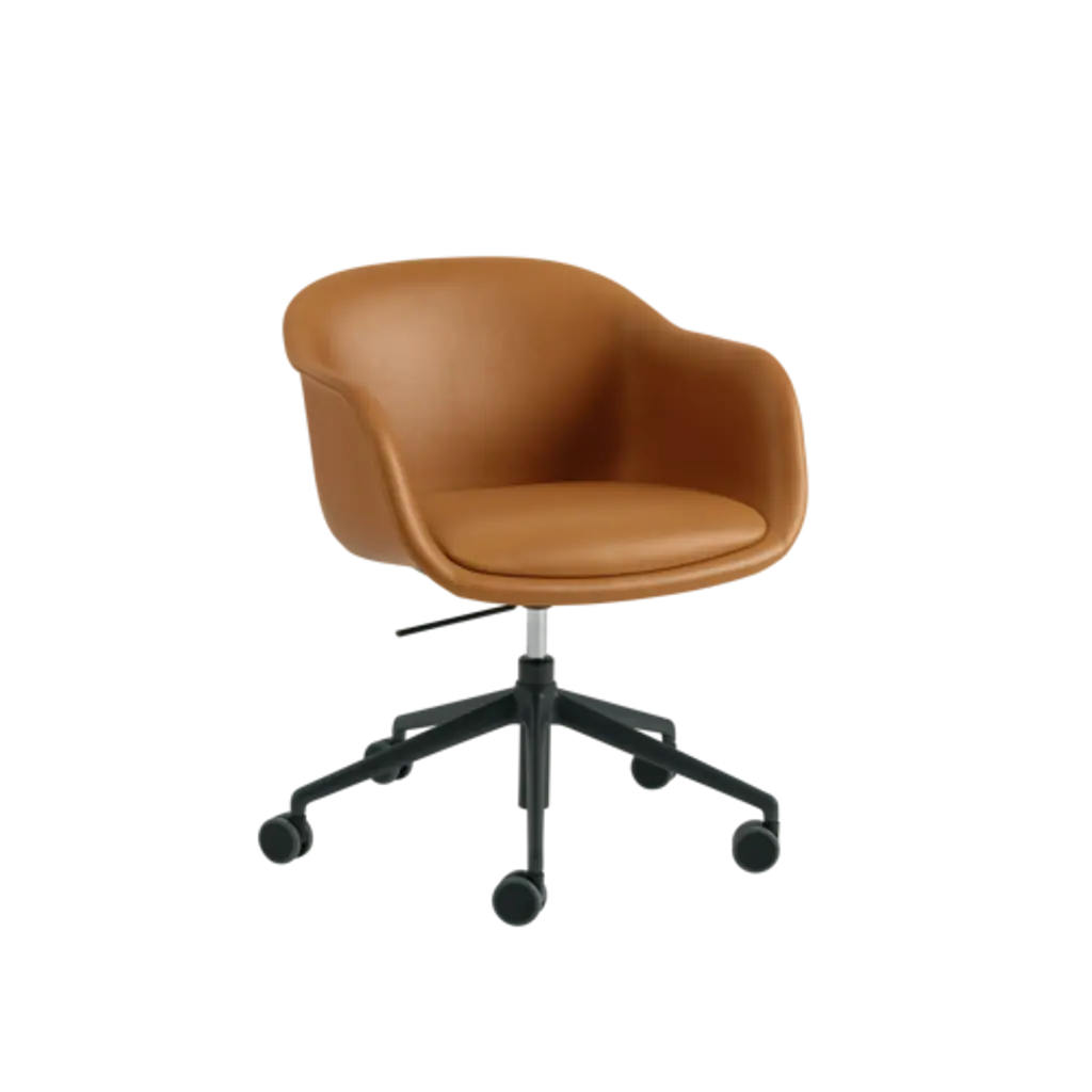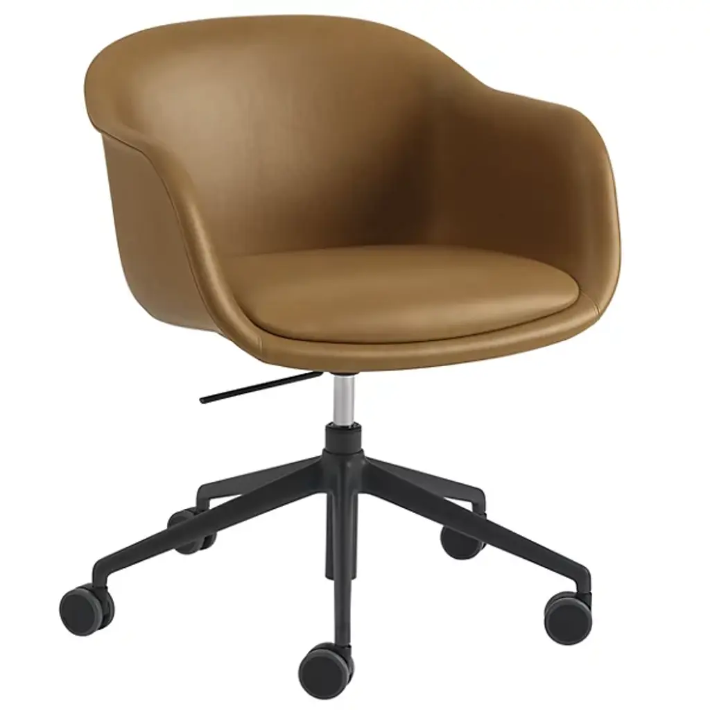 Muuto expands on the Fiber series of sculptural yet distinctly ergonomic seating from Copenhagen-based design duo Iskos-Berlin with a work-oriented version set on a swivel base with castors. Fiber Conference Armchair's built-in comfort makes it ideal in any setting for extended time spent seated, with its embracing interior shell made of 99% recycled plastic. The spacious seat and user-friendly contours are fully upholstered with a soft fixed cushion to suit public spaces and the home alike.