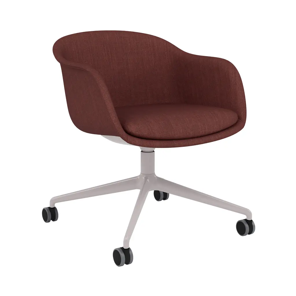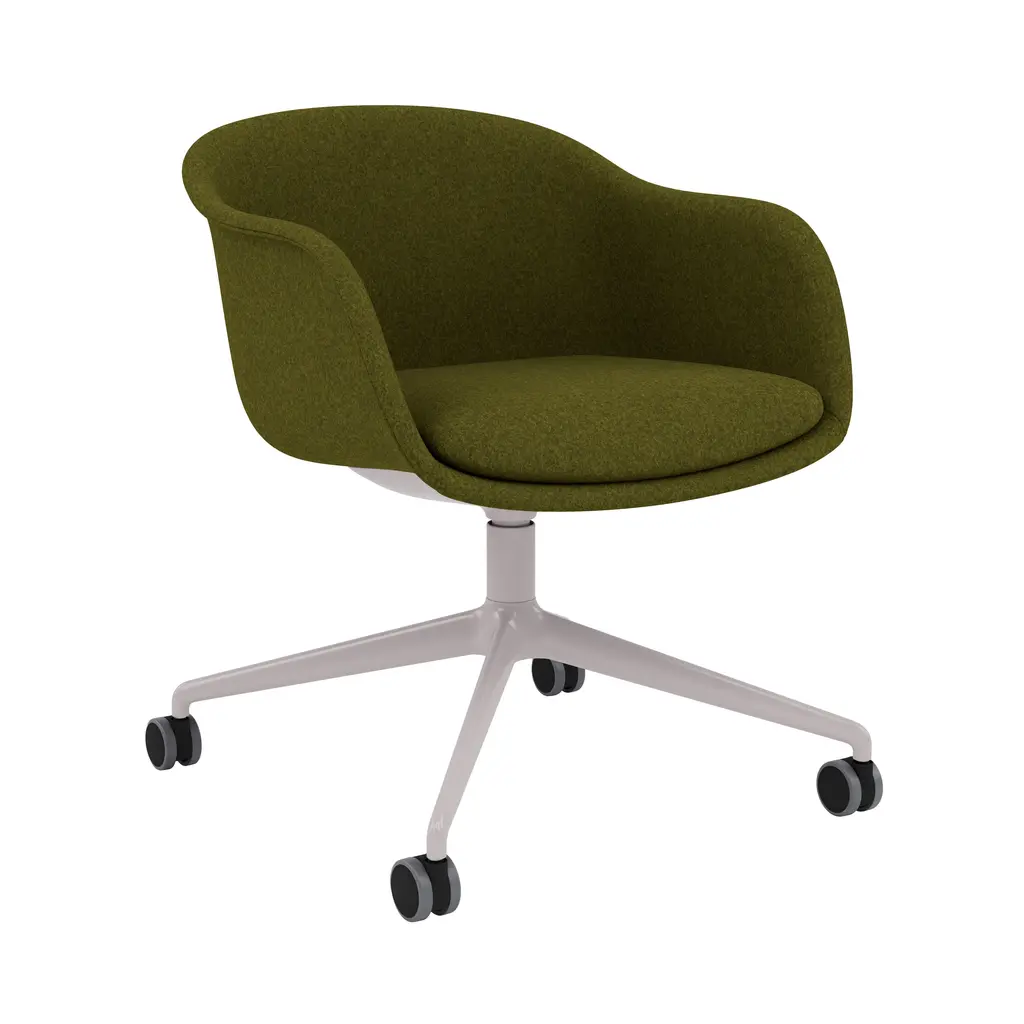Muuto expands on the Fiber series of sculptural yet distinctly ergonomic seating from Copenhagen-based design duo Iskos-Berlin with a work-oriented version set on a swivel base with castors. Fiber Conference Armchair's built-in comfort makes it ideal in any setting for extended time spent seated, with its embracing interior shell made of 99% recycled plastic. The spacious seat and user-friendly contours are fully upholstered with a soft fixed cushion to suit public spaces and the home alike.