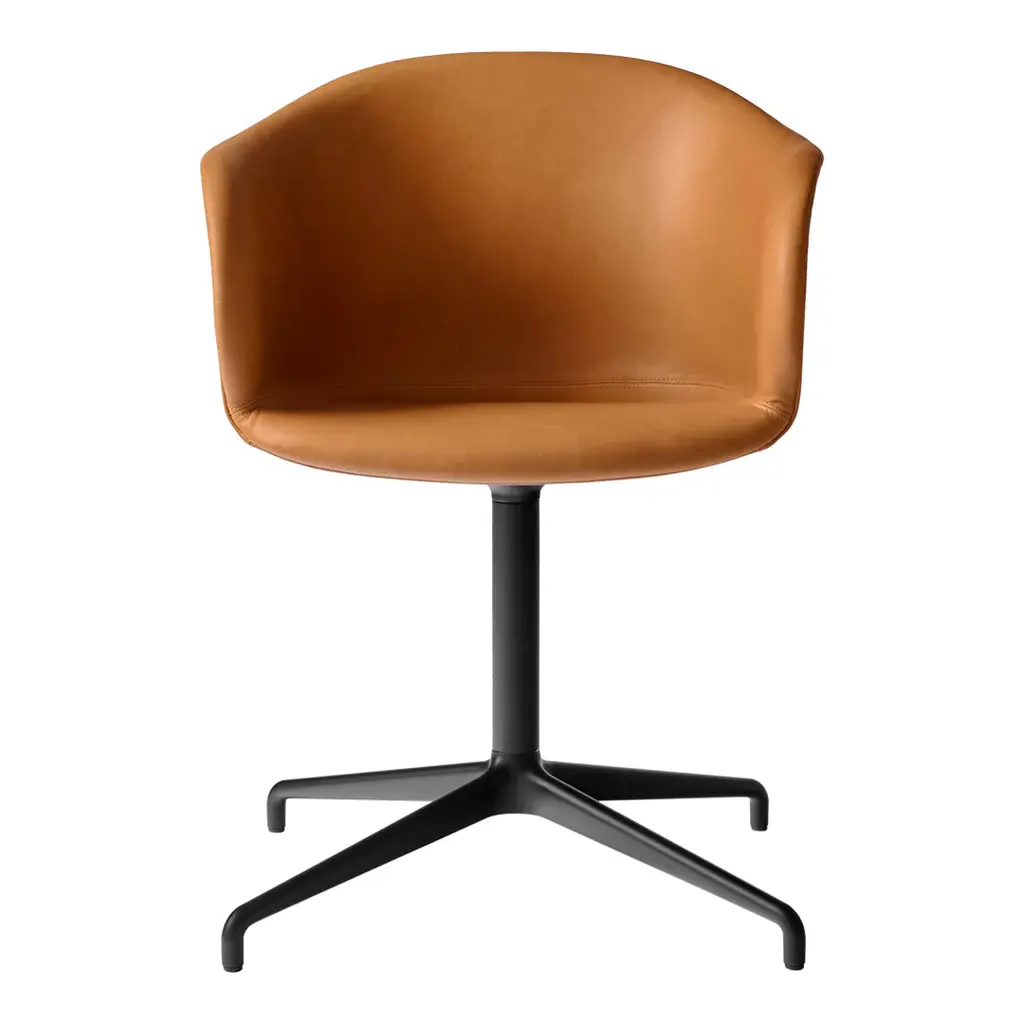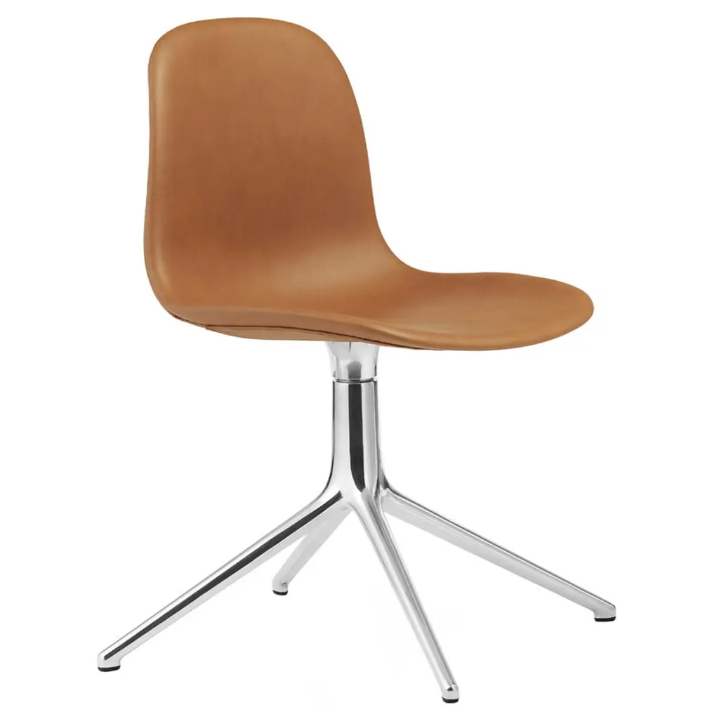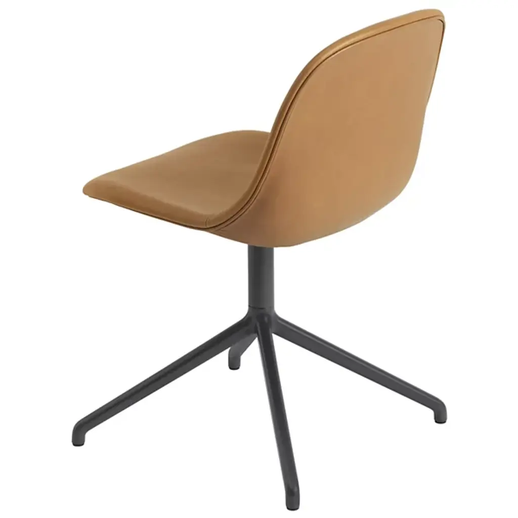 Enhance workspaces and waiting rooms alike with the refined, flexible Fiber Side Chair with Swivel Base from Muuto. A simple, minimalist interpretation of the one-piece seat and back shell chair, it rises from a die-cast aluminum base along a central column that holds the smoothly-pivoting swivel, rising nearly seamlessly to a curving shell seat and back molded from wood fiber and recyclable plastic. The wood fibers lend depth to the otherwise smooth seat, adding another engaging element to the flexible and functional design.