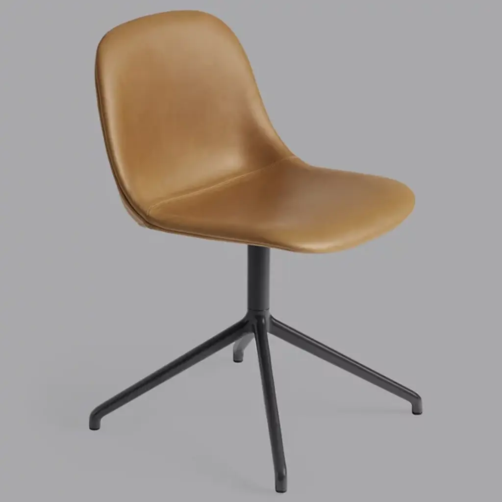 Enhance workspaces and waiting rooms alike with the refined, flexible Fiber Side Chair with Swivel Base from Muuto. A simple, minimalist interpretation of the one-piece seat and back shell chair, it rises from a die-cast aluminum base along a central column that holds the smoothly-pivoting swivel, rising nearly seamlessly to a curving shell seat and back molded from wood fiber and recyclable plastic. The wood fibers lend depth to the otherwise smooth seat, adding another engaging element to the flexible and functional design.
