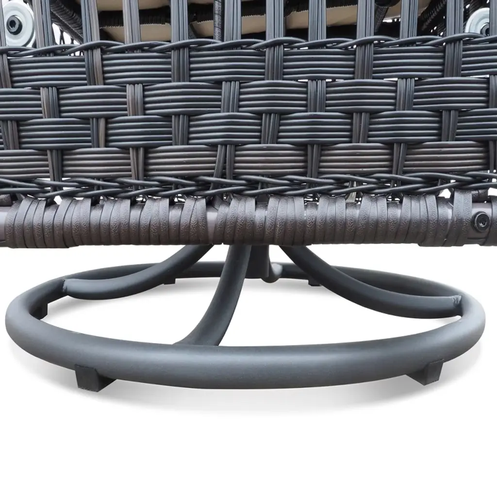 Create a cozy and stylish outdoor retreat with this 3-piece wicker rocker swivel bistro set. Designed for both comfort and durability, this set includes two 360¡ã swivel rocking chairs with plush khaki cushions and a tempered glass side table. Perfect for balconies, patios, porches, or garden corners, it¡¯s the ideal spot to unwind with a friend over coffee or cocktails.