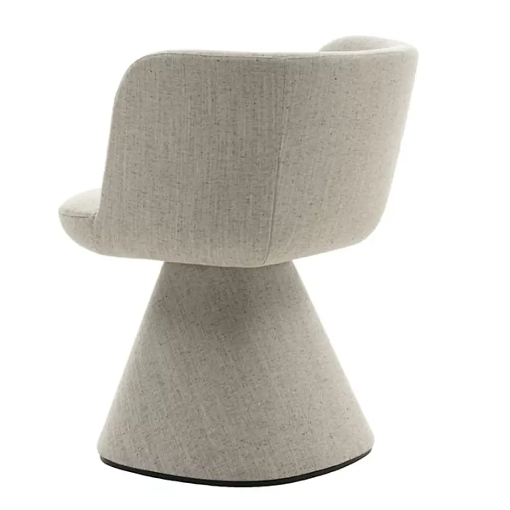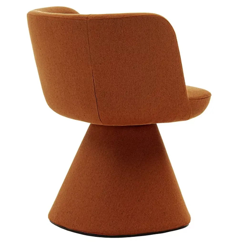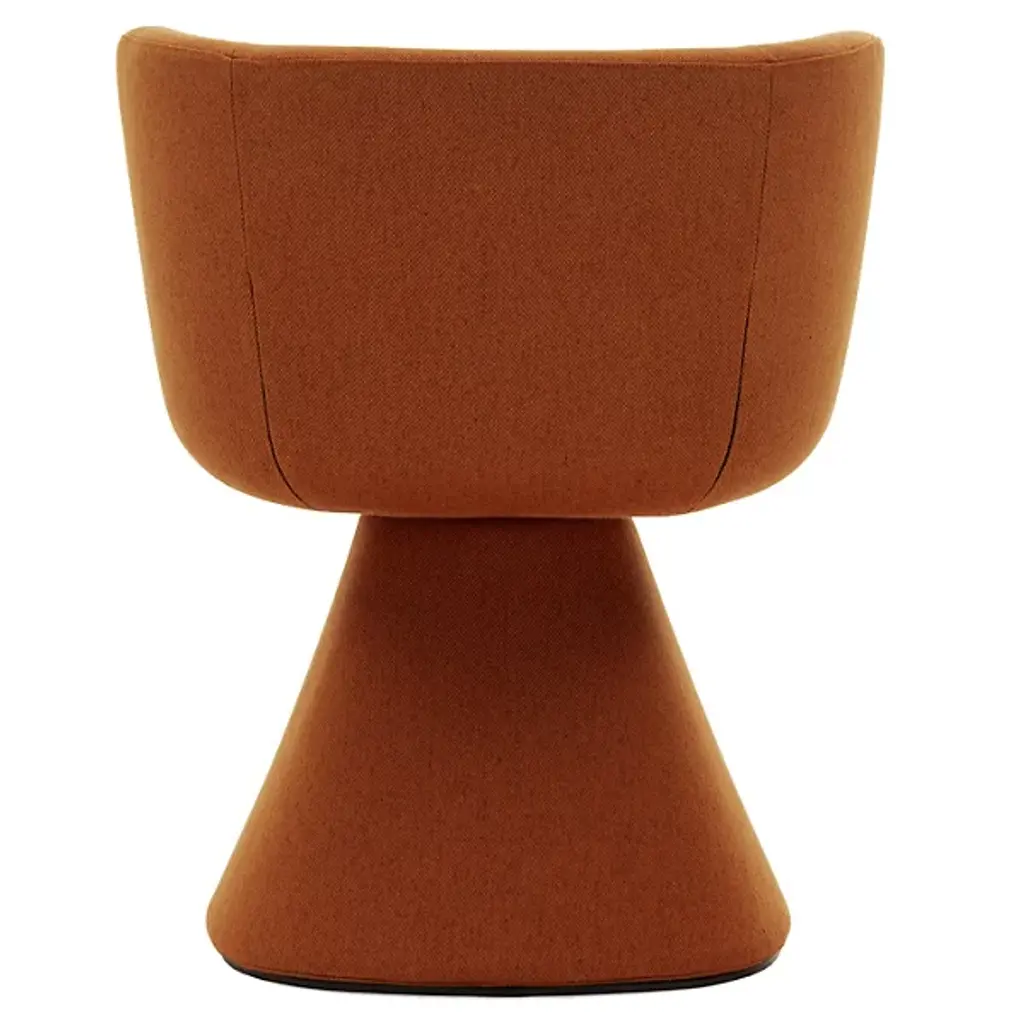 The Flair O Swivel Chair from B&B Italia is a small domestic throne, drawing inspiration for its name and style from Jackie O. Designer Monica Armani's disciplined approach and architectural inspiration are reflected in the piece’s pyramid-like base. The straight lines of the base lead the eyes upwards to the curvy shell above, which features a swivel mechanism with an automatic return.