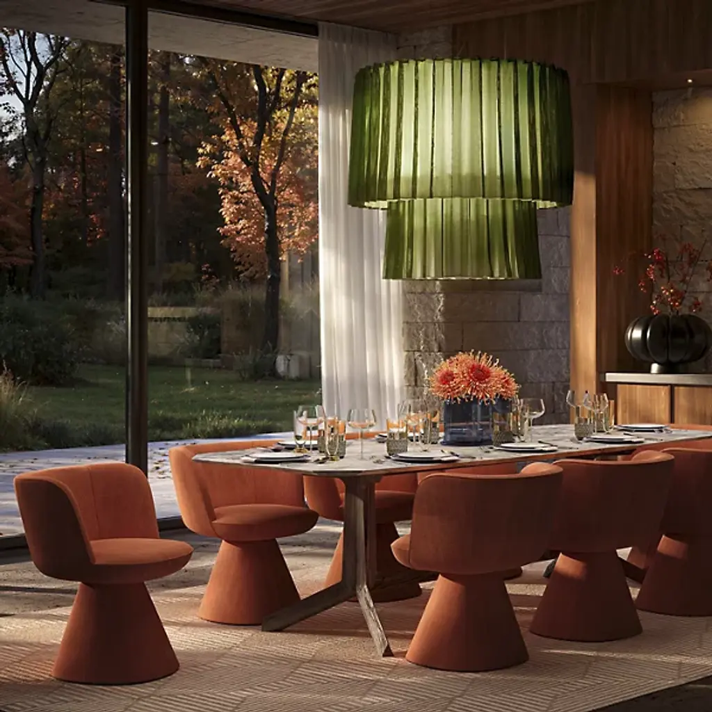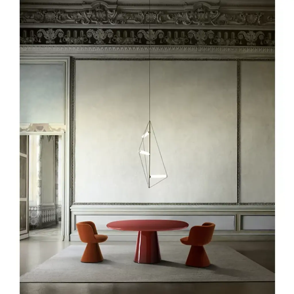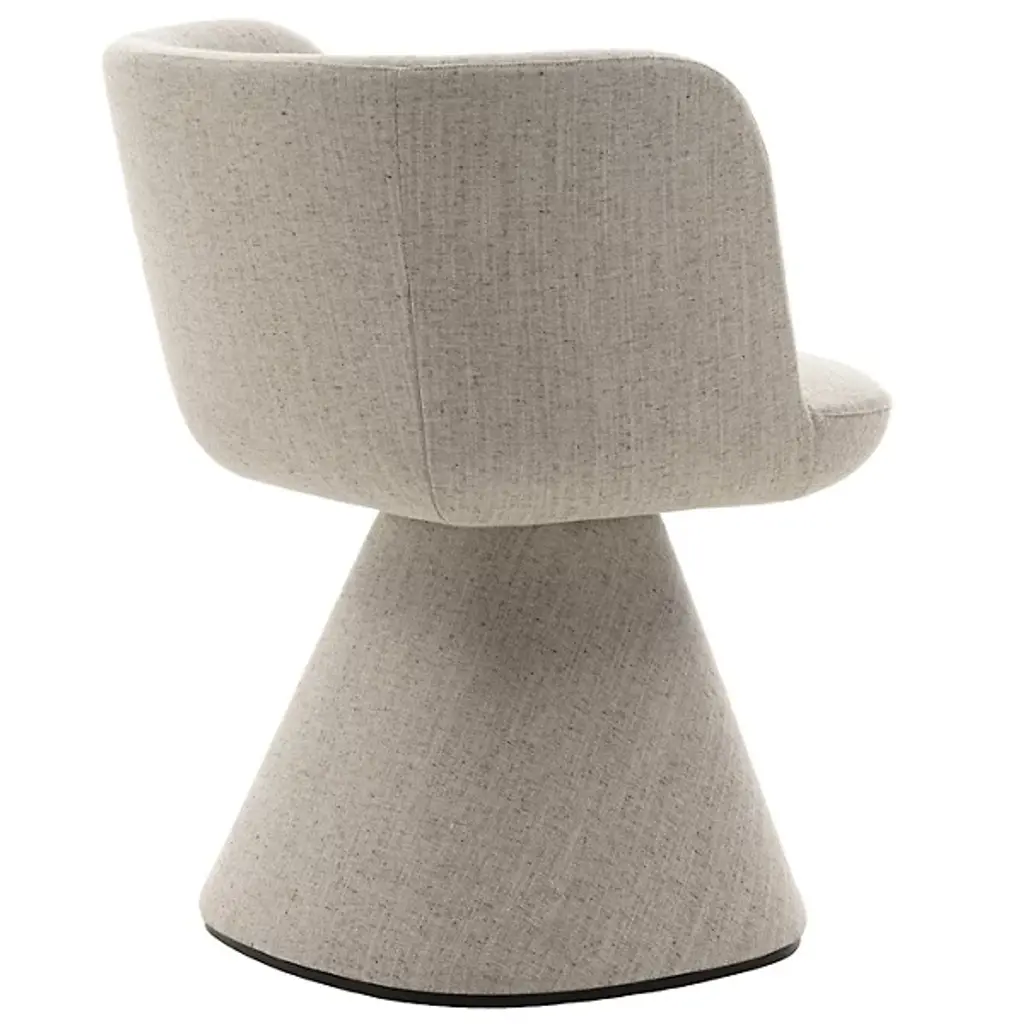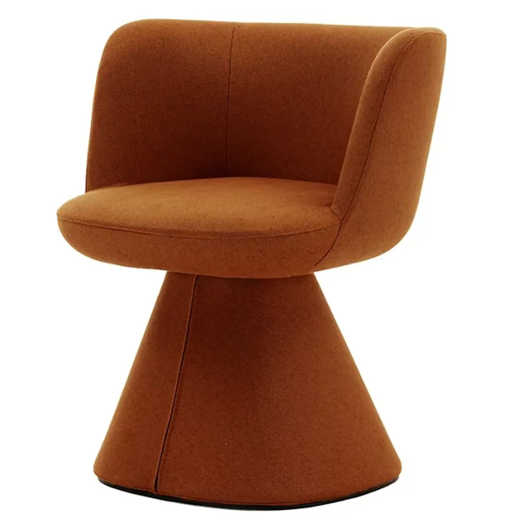 The Flair O Swivel Chair from B&B Italia is a small domestic throne, drawing inspiration for its name and style from Jackie O. Designer Monica Armani's disciplined approach and architectural inspiration are reflected in the piece’s pyramid-like base. The straight lines of the base lead the eyes upwards to the curvy shell above, which features a swivel mechanism with an automatic return.