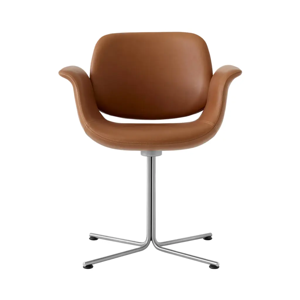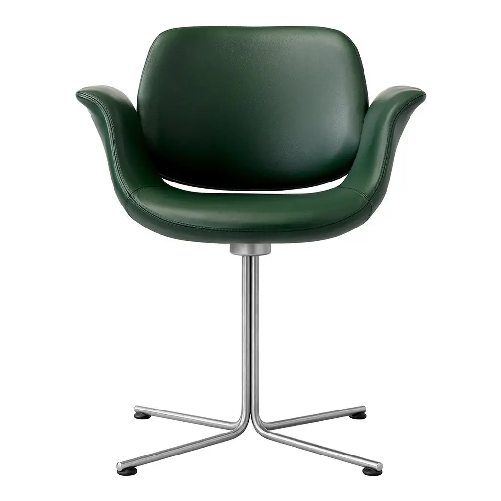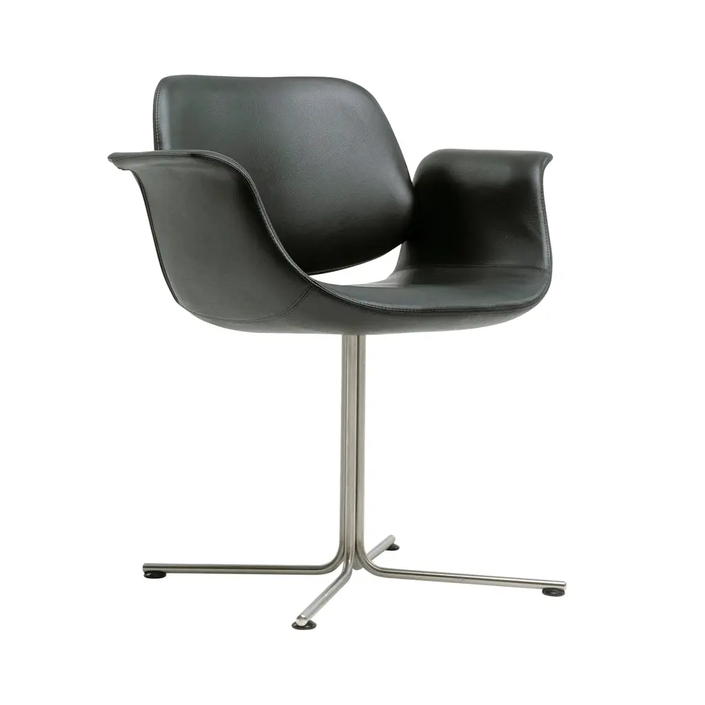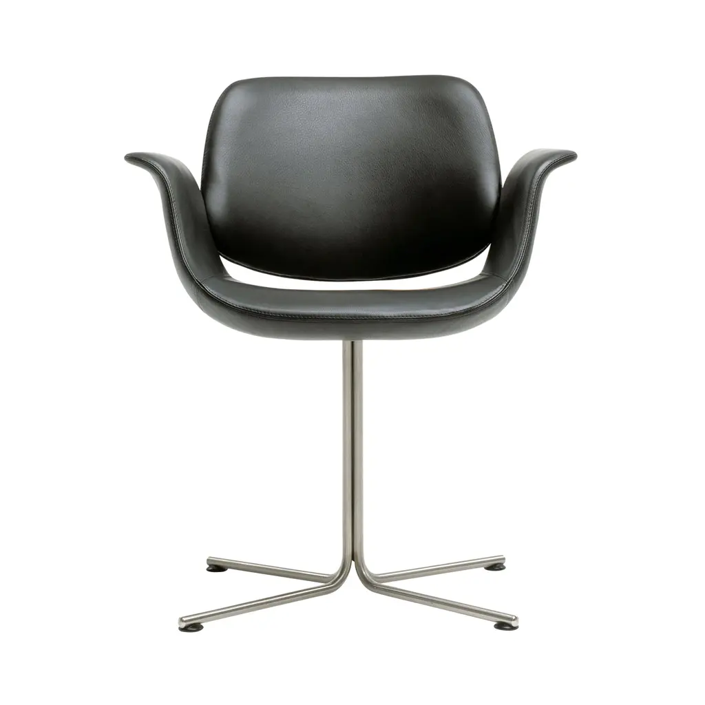 With the graceful curves of the seat and its symbolic “wings” for arms poised above the long, slim base, Foersom & Hiort-Lorenzen's lounge chair certainly looks the part. Flamingo's backrest appears as if it’s floating on top, in the shell's culmination of fluid lines. Available in both swivel and fixed versions, the seat is shaped in molded cold cured foam reinforced with steel and expertly upholstered in a premium fabric or leather, accompanied by the base in either brushed stainless-steel or black.