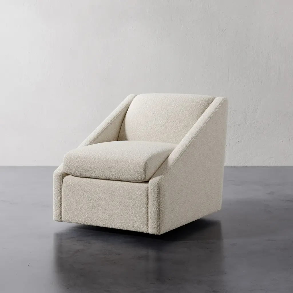 The Fontaine Swivel Chair from Lemieux et Cie is an ode to the refined restraint of early French modernism. Its sculptural form and tailored silhouette draw inspiration from the 1920s decorative minimalists, particularly the quiet influence of Jean-Michel Frank. With clean architectural lines and a smooth swivel base, it offers a dynamic yet grounded presence. A study in proportion and purity, the chair’s structured shape is softened by plush, luxurious upholstery—balancing form and comfort in perfect harmony.