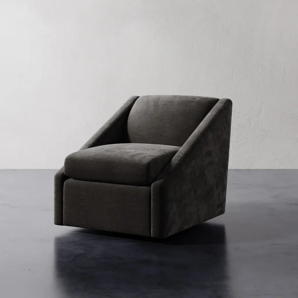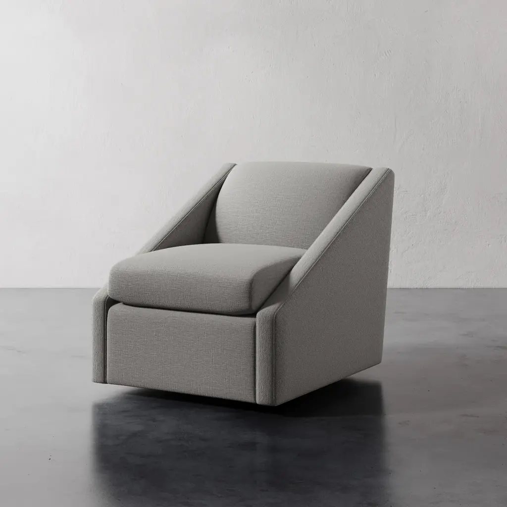 The Fontaine Swivel Chair from Lemieux et Cie is an ode to the refined restraint of early French modernism. Its sculptural form and tailored silhouette draw inspiration from the 1920s decorative minimalists, particularly the quiet influence of Jean-Michel Frank. With clean architectural lines and a smooth swivel base, it offers a dynamic yet grounded presence. A study in proportion and purity, the chair’s structured shape is softened by plush, luxurious upholstery—balancing form and comfort in perfect harmony.