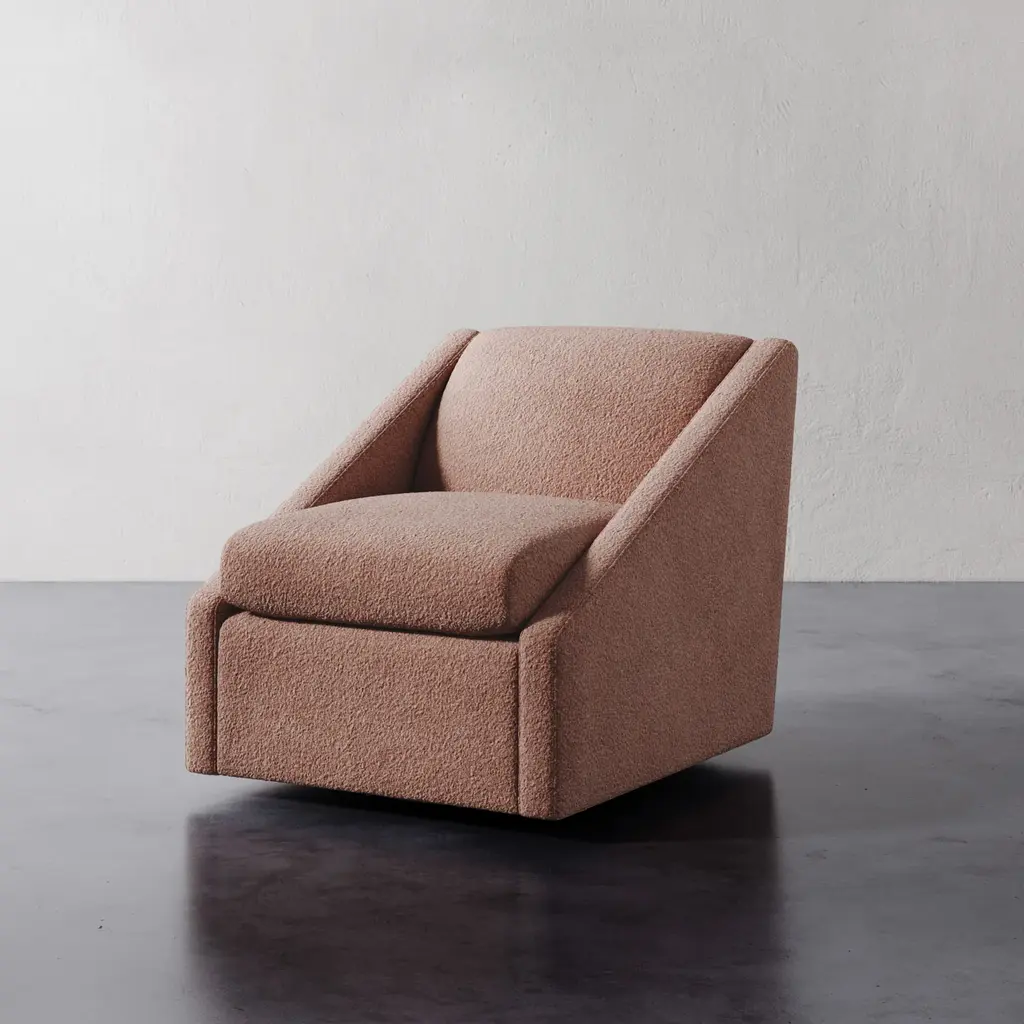 The Fontaine Swivel Chair from Lemieux et Cie is an ode to the refined restraint of early French modernism. Its sculptural form and tailored silhouette draw inspiration from the 1920s decorative minimalists, particularly the quiet influence of Jean-Michel Frank. With clean architectural lines and a smooth swivel base, it offers a dynamic yet grounded presence. A study in proportion and purity, the chair’s structured shape is softened by plush, luxurious upholstery—balancing form and comfort in perfect harmony.