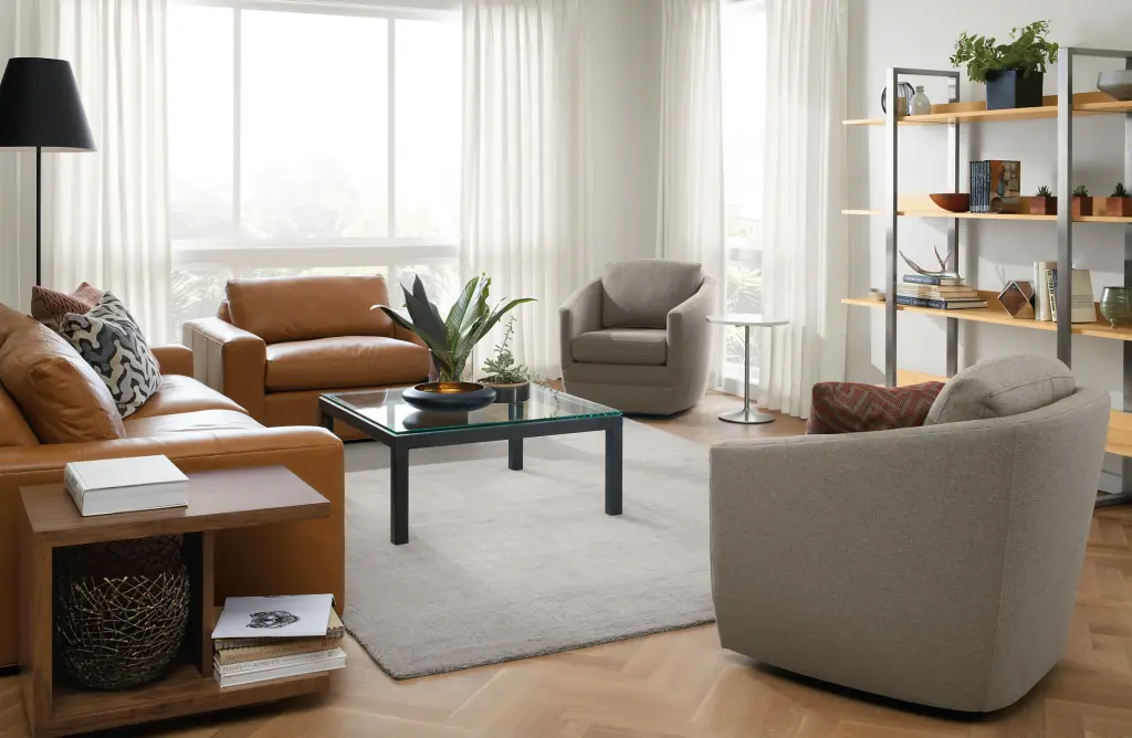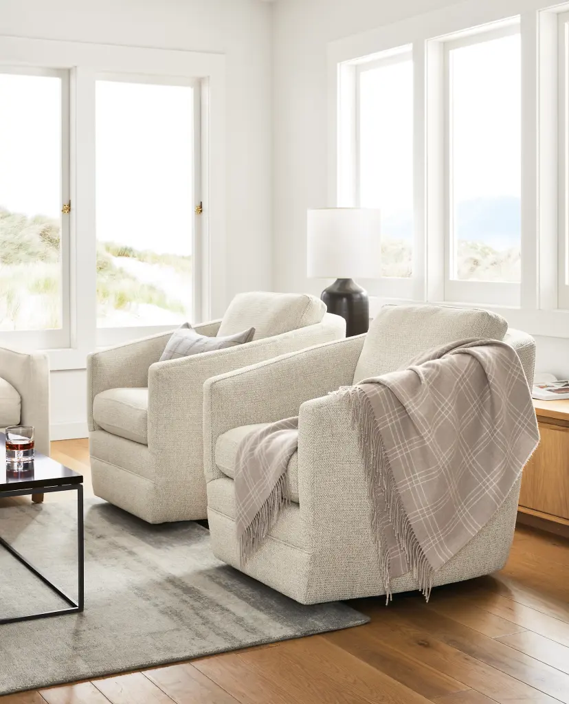 A swivel chair that looks right at home in any space, Ford fits people of every size. The swivel base, low seat and sloping arms envelop you in comfort. With a loose seat and a comfortable back cushion, Ford is warm and inviting.
