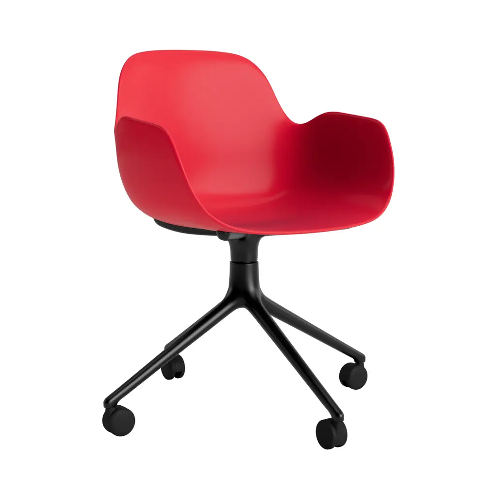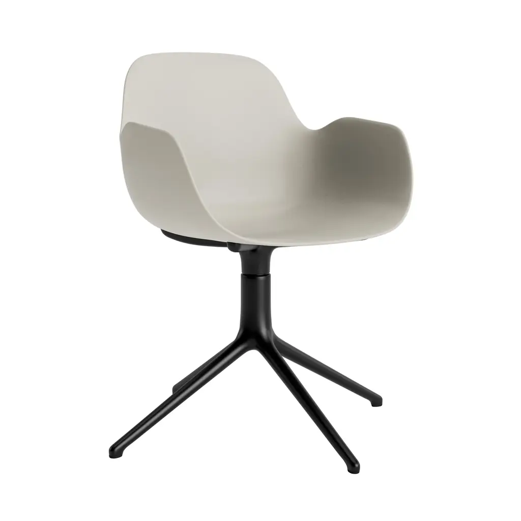 The Form armchair, with its contoured shell, is already a comfortable fit. Paired with a swivel base, and it's a welcome addition at a conference or dining table. Such is the aim for Danish designer Simon Legald, who not only wanted a contoured chair that welcomed the user for long stints, he also wanted a Form that could function in nearly every scenario. With 40,000 combination, the Form seating series, made by Normann Copenhagen, does just that.