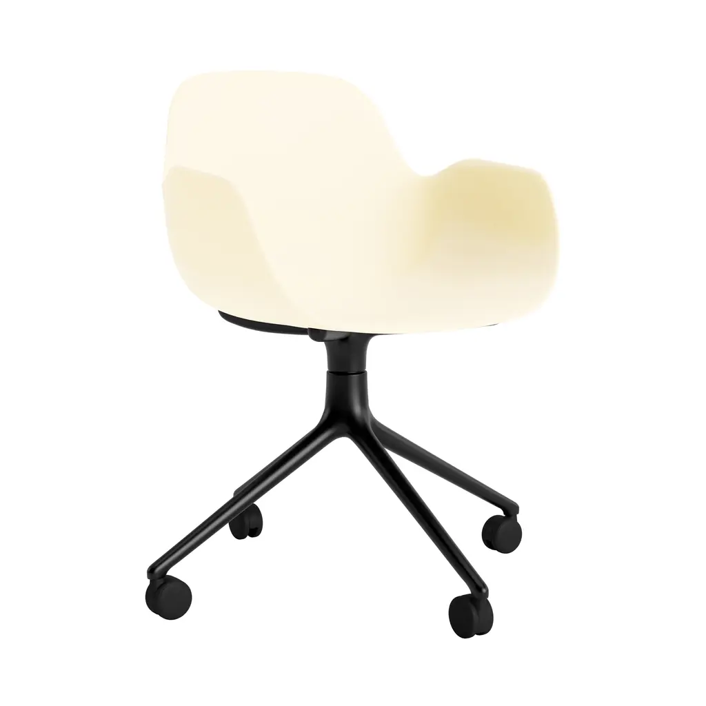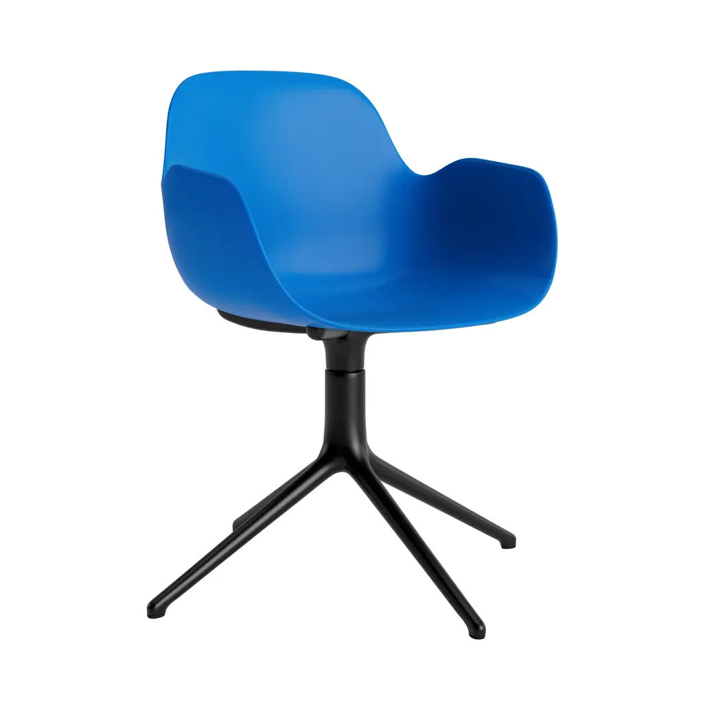 The Form armchair, with its contoured shell, is already a comfortable fit. Paired with a swivel base, and it's a welcome addition at a conference or dining table. Such is the aim for Danish designer Simon Legald, who not only wanted a contoured chair that welcomed the user for long stints, he also wanted a Form that could function in nearly every scenario. With 40,000 combination, the Form seating series, made by Normann Copenhagen, does just that.