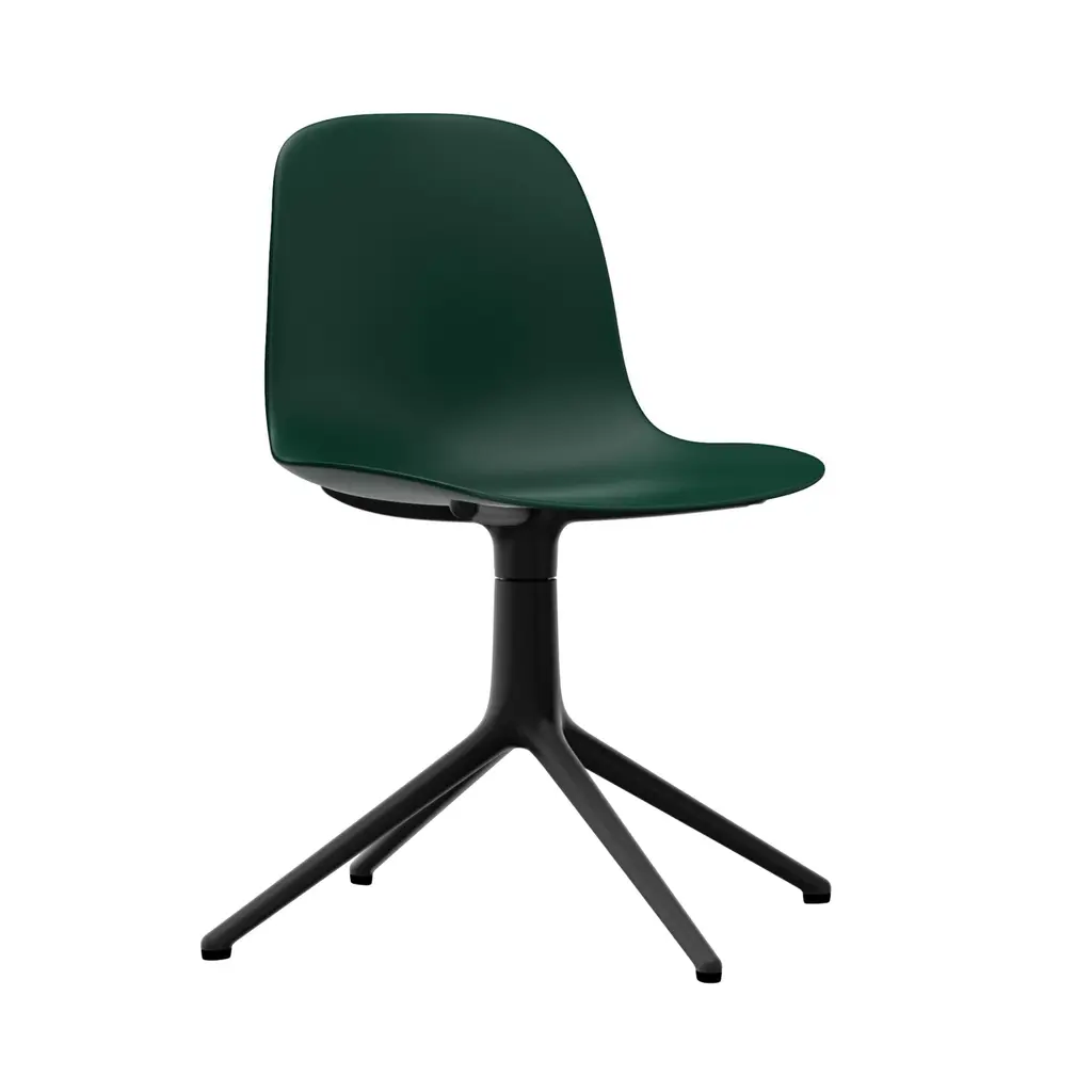With this swivel-based version, designer Simon Legald pivots the role of his signature Form Chair for Normann Copenhagen with a comforting turn at the dining or work table in mind. Four slim arms grip the chair shell. Those same "arms" meet in a rotating centerpiece and then become legs, branching out to the ground. The aluminum base is available polished or lacquered in black or white. Swivel is only one of the many bases of the Form seating series, which also comes as an armchair and in bar and counter heights, as well as upholstery. The result is some 40,0000 possible combinations.