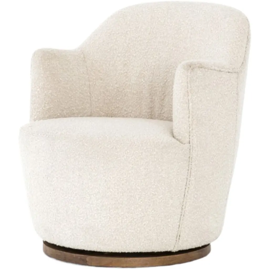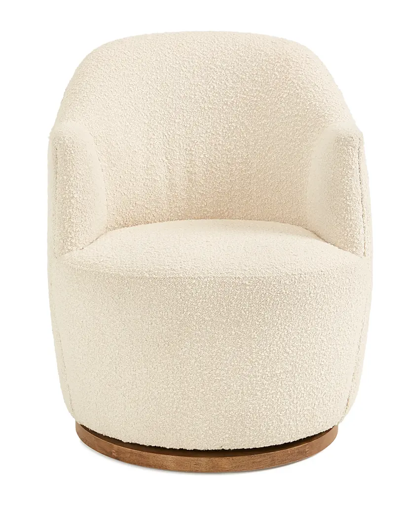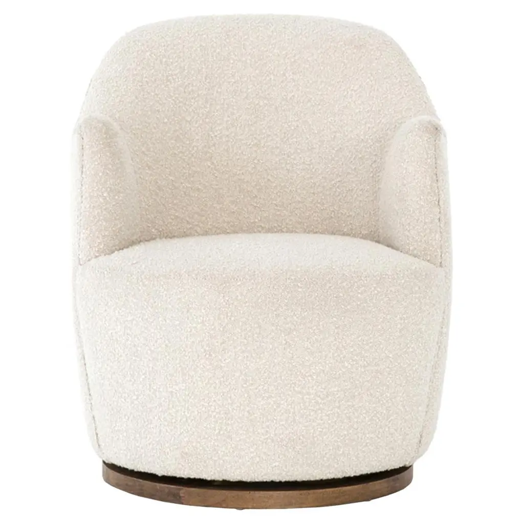 Handcrafted swivel chair. Parawood frame. Polyester/acrylic. Stapled and glued construction. 26"W x 31.5"D x 31"T. Arm height, 26". Imported. Boxed weight, approximately 55.1 lbs. About Four Hands: Four Hands is a dynamic lifestyle brand that offers a diverse range of furniture and home decor items. With a focus on innovative design and quality craftsmanship, Four Hands creates pieces that blend modern aesthetics with traditional craftsmanship. From stylish sofas and chairs to unique accent pieces and accessories, each product is thoughtfully designed to inspire and elevate any living space. With a commitment to sustainability and ethical practices, Four Hands is dedicated to creating beautiful, functional, and responsibly made products for the modern home.