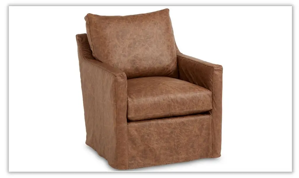 Introducing the Miles Chair Leather, the perfect blend of style and comfort for your living space. With its sleek track arm design, this chair adds a modern touch to any room. The leather slipcover is included, making it easy to maintain and keep looking fresh. Whether you're watching your favorite TV show or curling up with a good book, the swivel base allows you to find the perfect position for relaxation. Upgrade your home decor with the Miles Chair Leather today!This is a Custom Model. Call us for Quote.