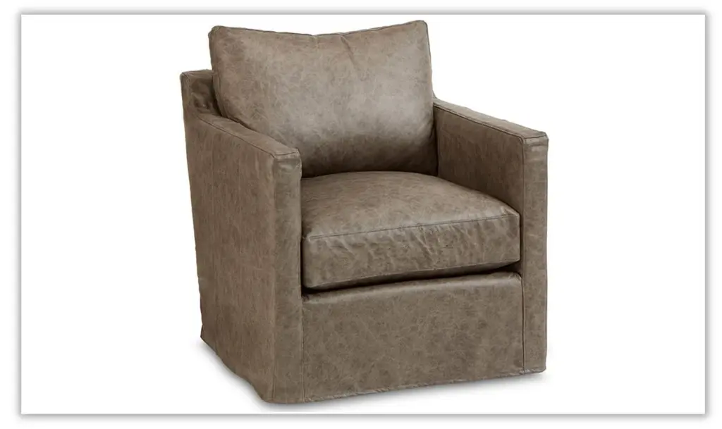 Introducing the Miles Chair Leather, the perfect blend of style and comfort for your living space. With its sleek track arm design, this chair adds a modern touch to any room. The leather slipcover is included, making it easy to maintain and keep looking fresh. Whether you're watching your favorite TV show or curling up with a good book, the swivel base allows you to find the perfect position for relaxation. Upgrade your home decor with the Miles Chair Leather today!This is a Custom Model. Call us for Quote.